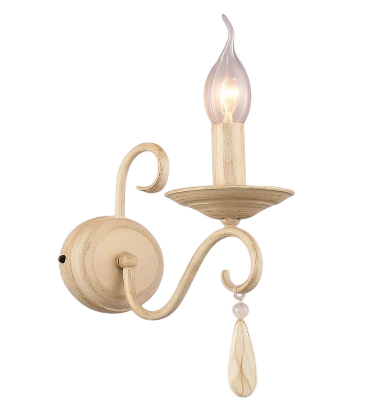 This elegant wall sconce blends timeless Italian aesthetics with modern functionality, featuring a sophisticated distressed gold finish and a delicate crystal-like teardrop accent.