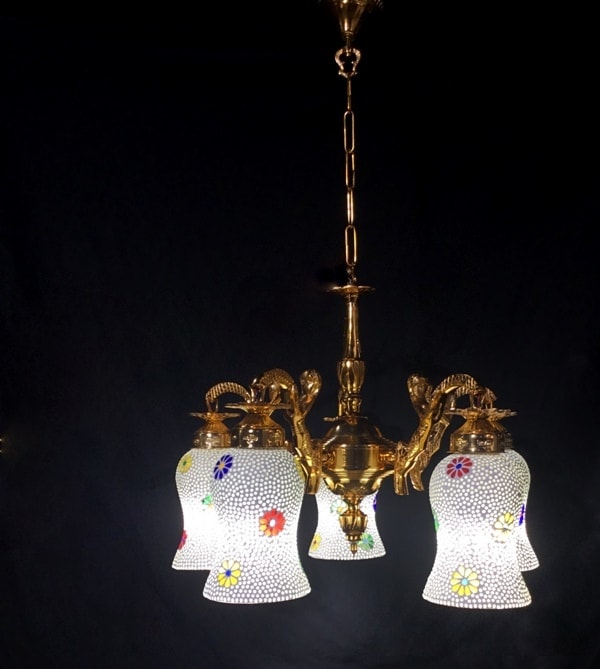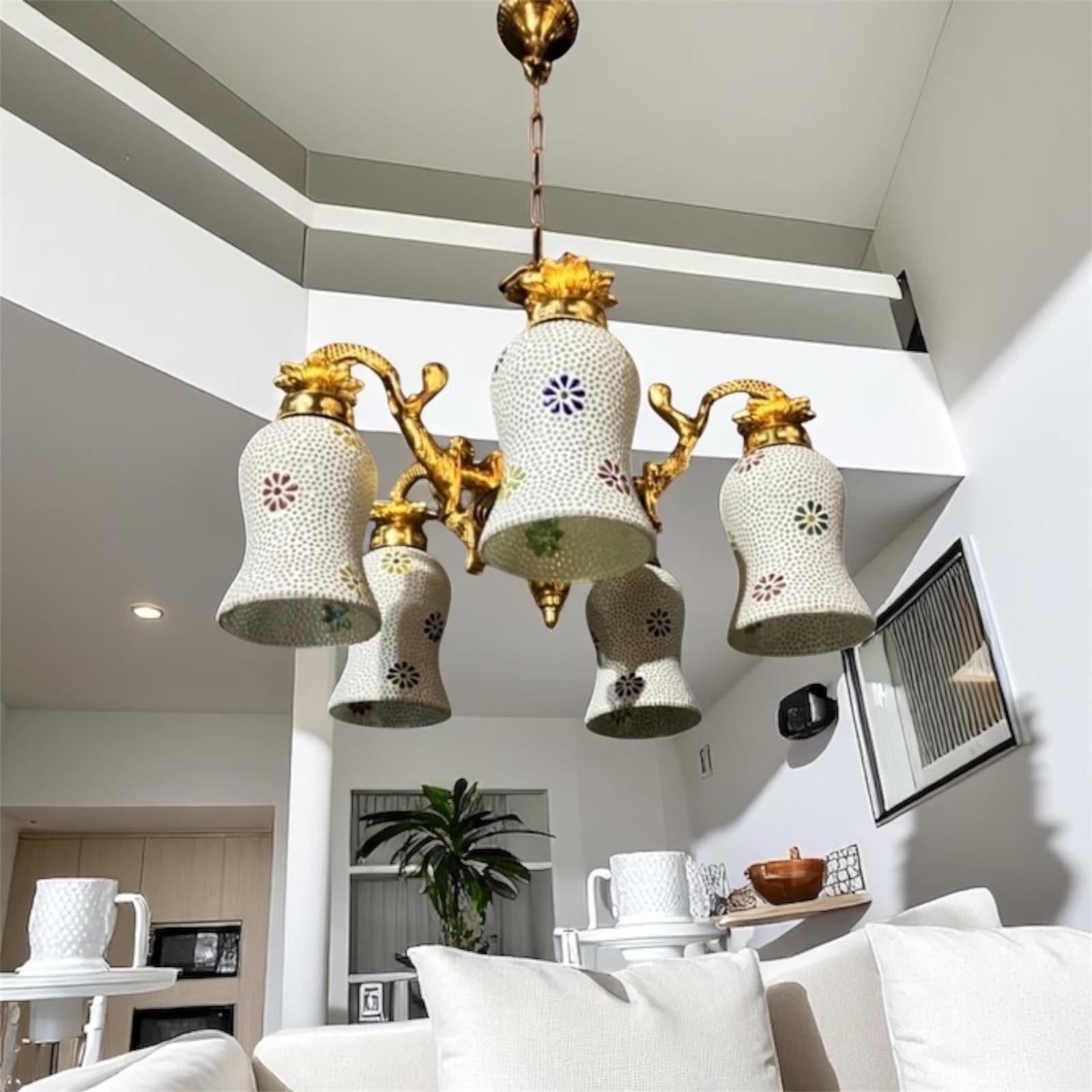 5 White Tiffany Glass Lamps Golden Touch Architect Design Antique Chandelier