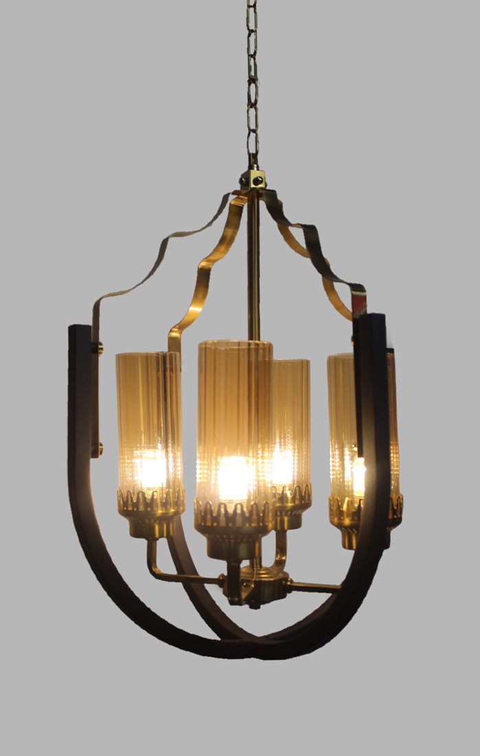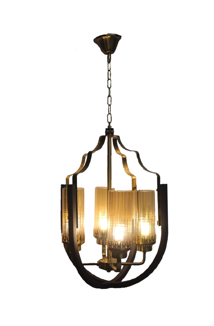 Antique Black & Golden Finish Body Modern Design With 4 Glass Chandelier For Your Home Decoration Jhoomar