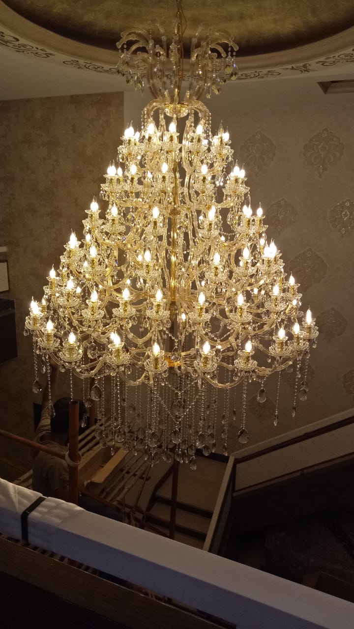 Candle chandelier chandelier with round shape design with crystal ball for best beautification.