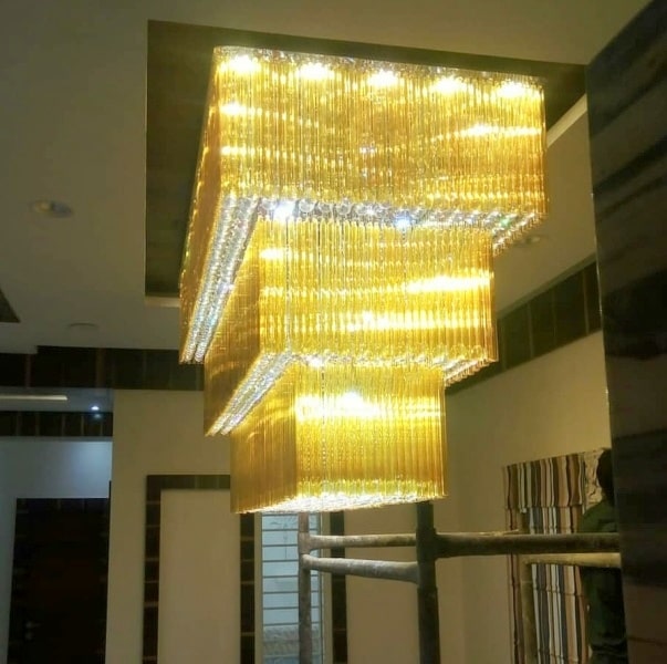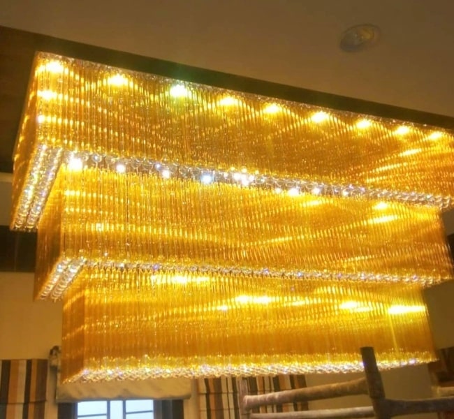 Customized Rectangular Shape And Three Step Crystal Design Surface Mounted Chandelier