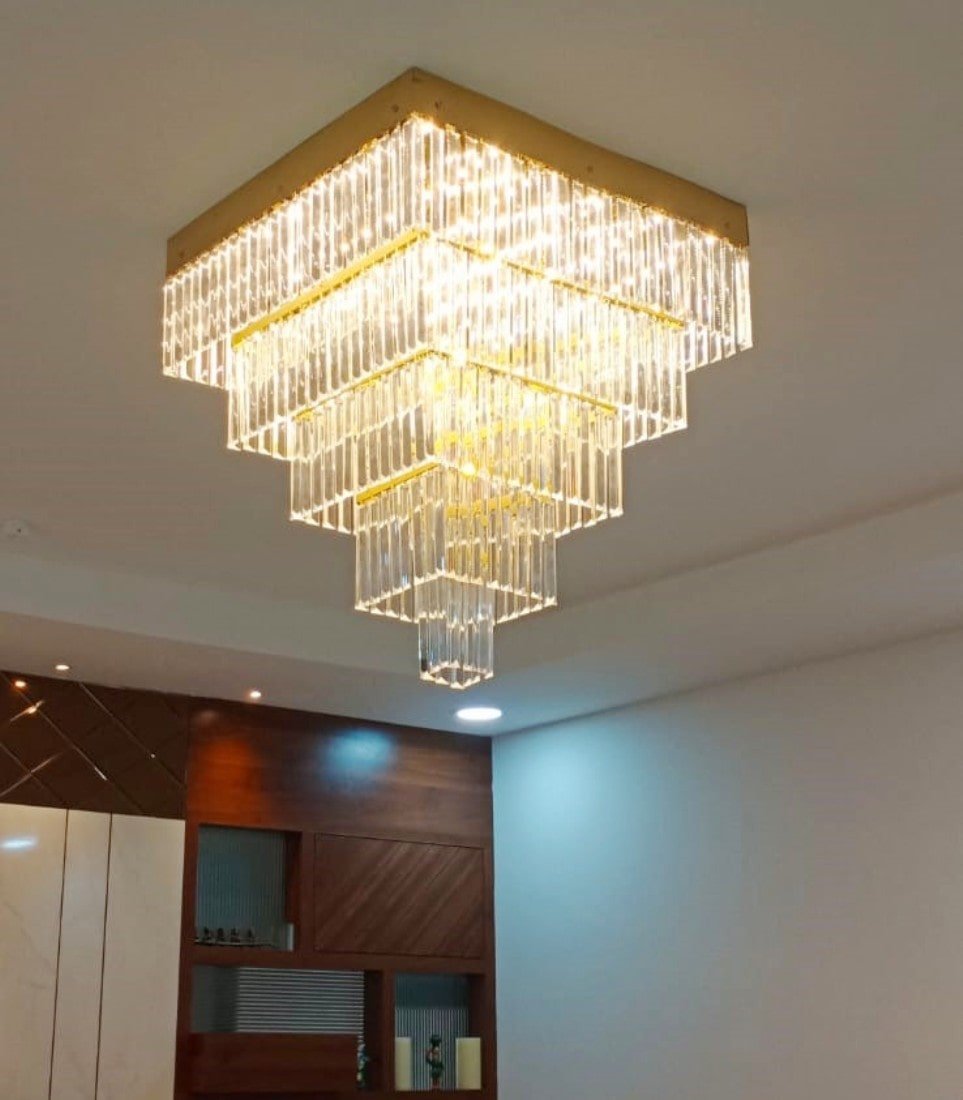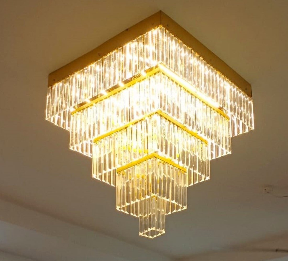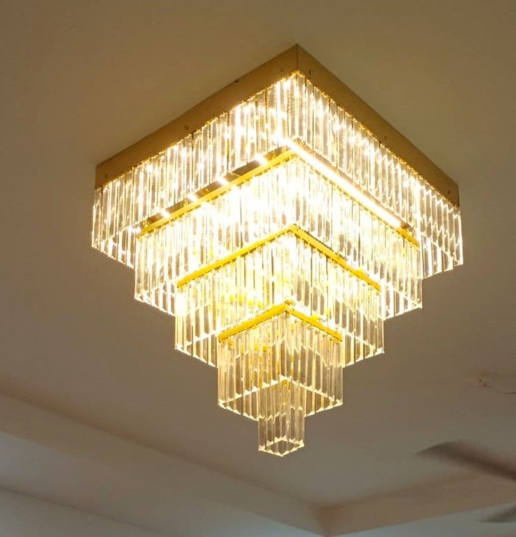 The 5 Step Customize Square Shape Crystal Decor Golden Finish Ceiling Mount And Flush Mount Chandelier For Living Room And Bedroom