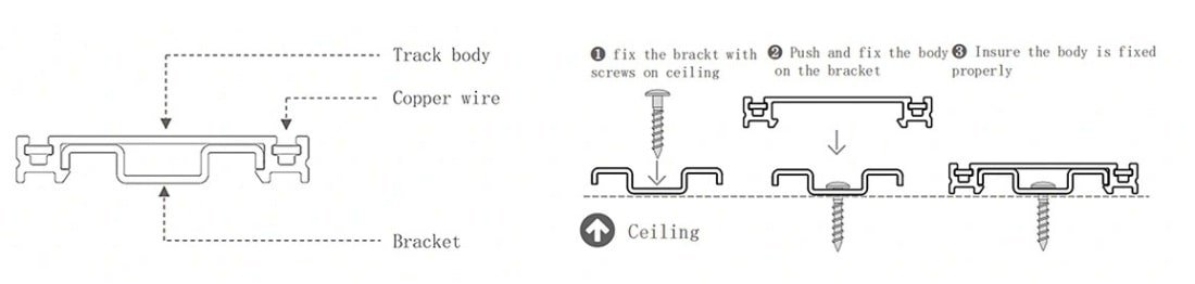 Apply a magnet system without suspended ceiling. The track splicing can be extended and turned arbitrarily, and the ceiling surface can be turned to the wall.