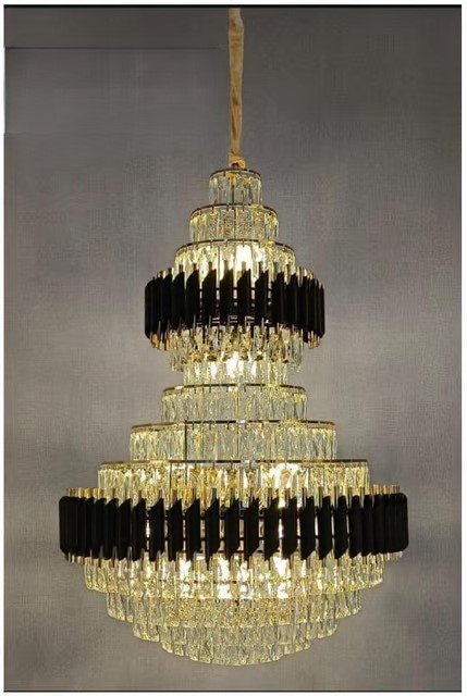The Golden And Black Finish Big Ize Royal Design Crystal Decor Chandelier For Villa And Hotel