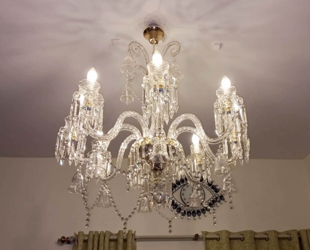 Beautiful glass lamps and crystal decor chandelier. Enhance your home and hotel beauty with this Indian design customized chandelier. Chandeliers is a great touch to our homes, hotels and banquet hall.