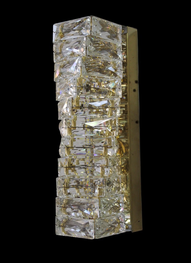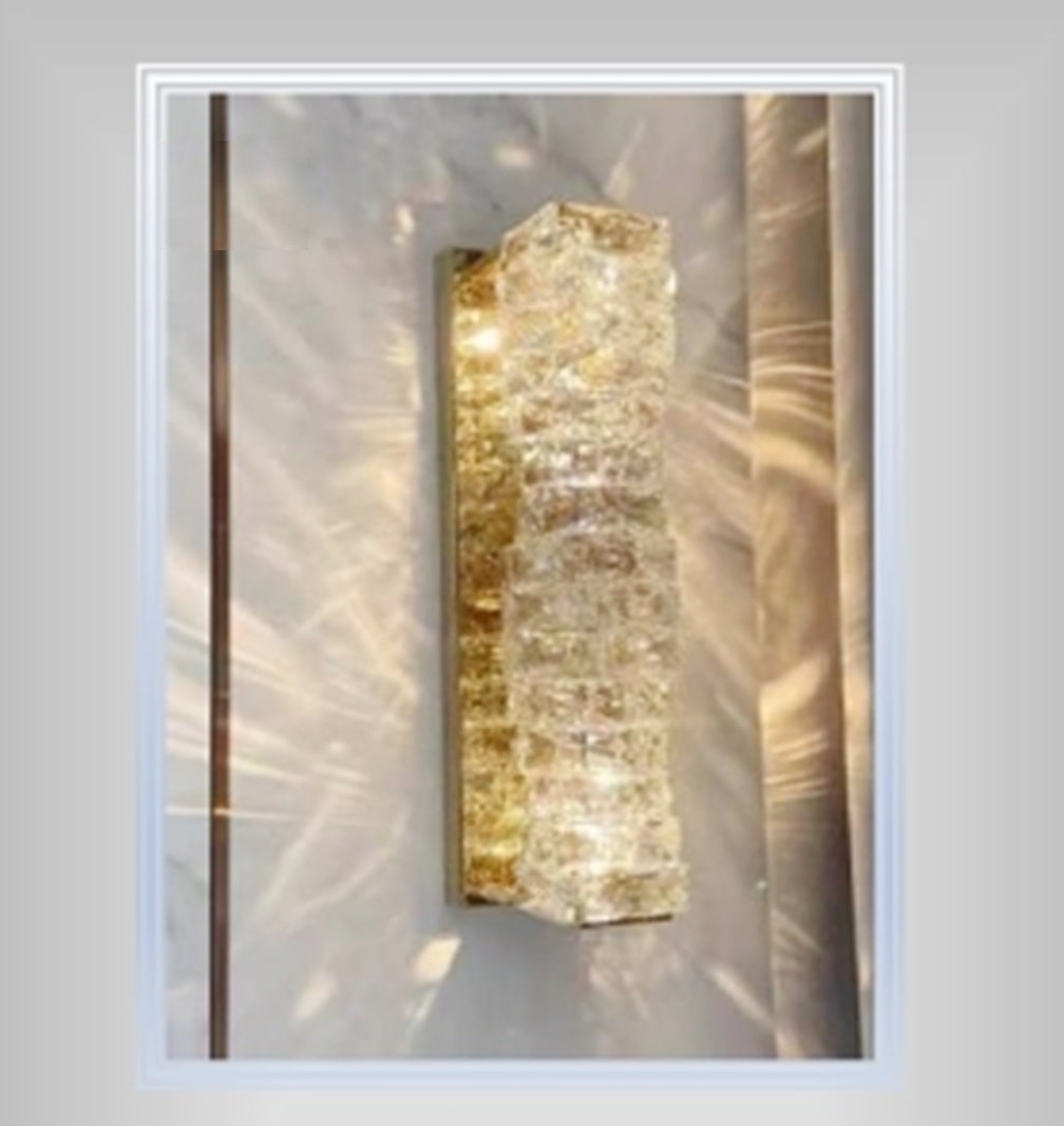 The Medium Size Pole Shape With Golden Finish Body And Attractive And Shiny Crystal Decor Design Wall Sconce Lamp