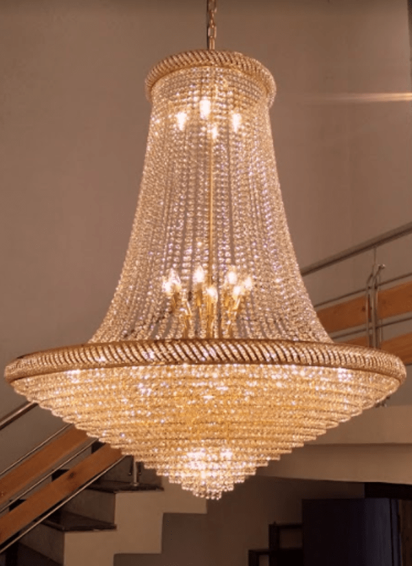 1000 Mm Big Size Crystal Design Gold Finish Metal Body Pendant Chandelier For Villa And Hotel
