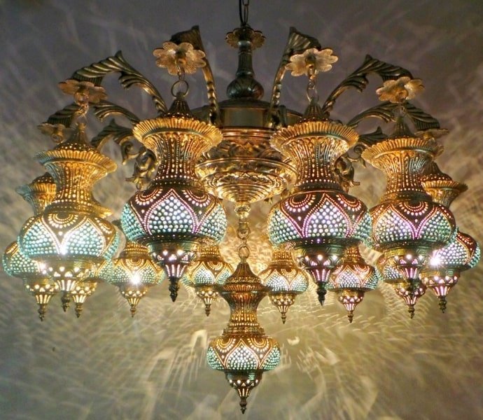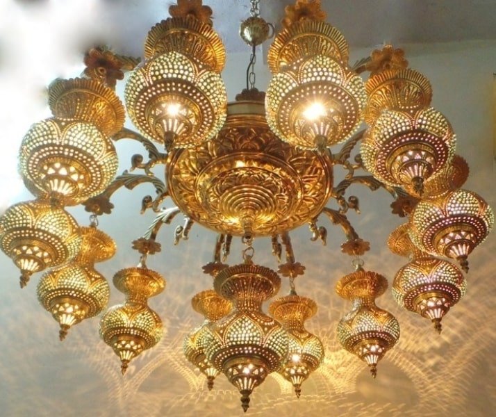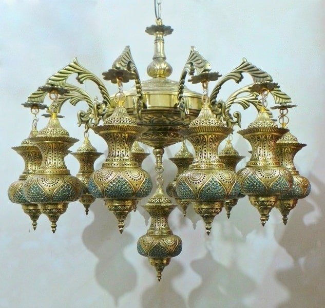 13 Brass Pendant Lamp Big Size Mughal Designer Antique Chandelier
