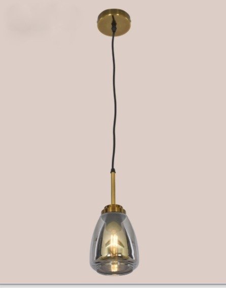 Clear handblown mini glass shade with brass-finished metal base, blending industrial and modern styles, perfectly matching various decoration styles