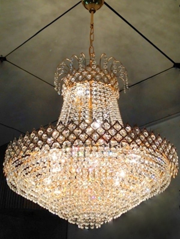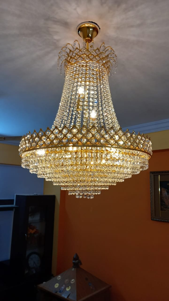 This is a golden colored frame chandelier,which full of k9 original crystal,which makes beauty to your home.