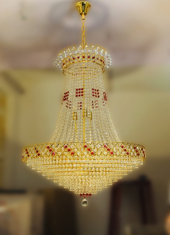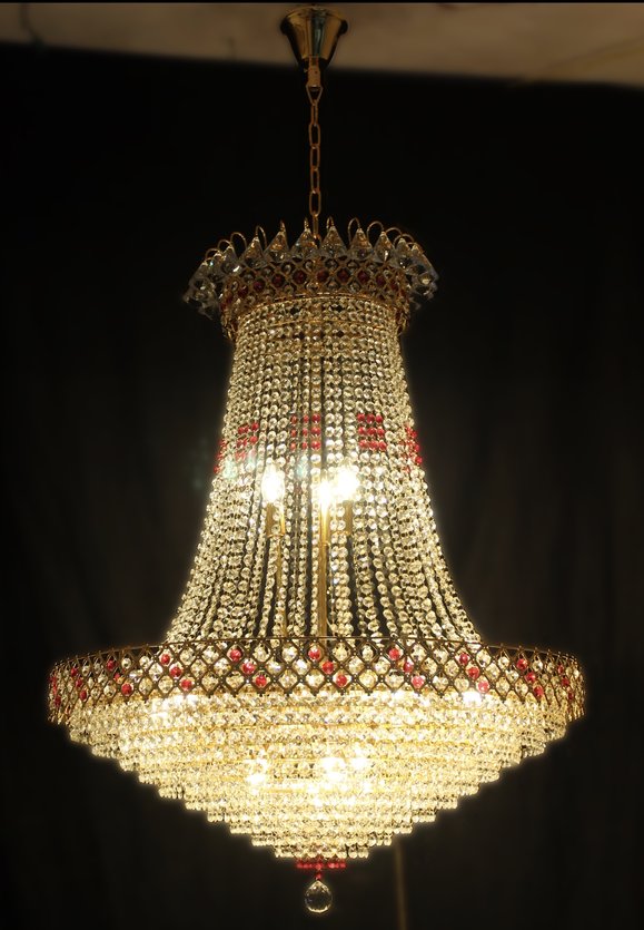 800 Mm Golden Crystal Hanging With Red Crystal Chandelier