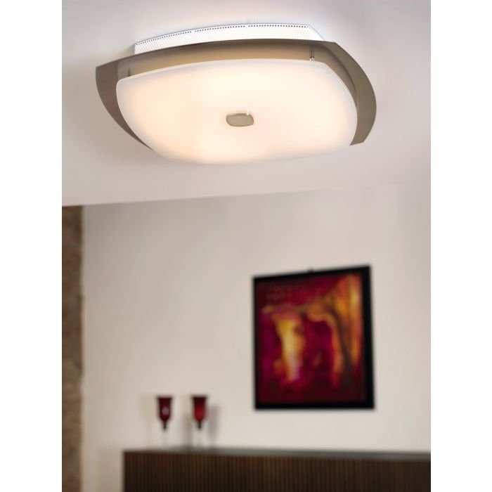 This square shaped ceiling light is made of steel and glass and its light is very quiet and non-flammable.