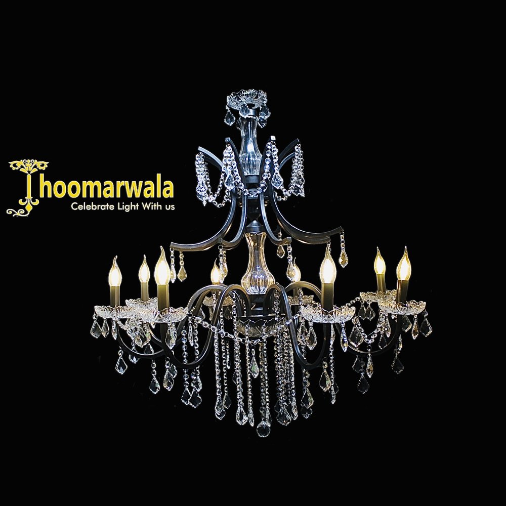 Beautiful 8 Light Crystal Matt Black Italian Chandelier