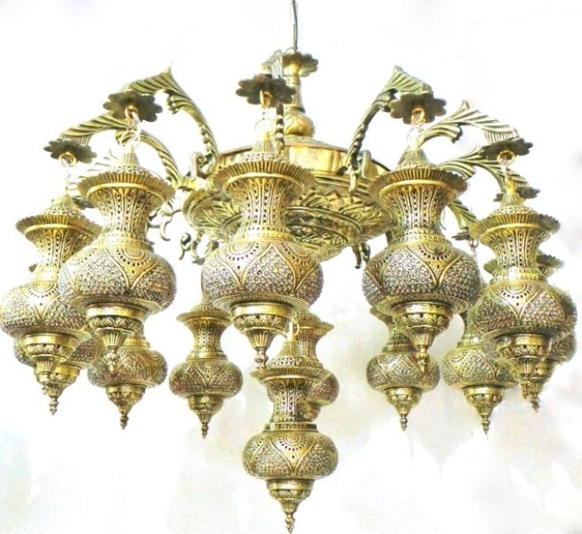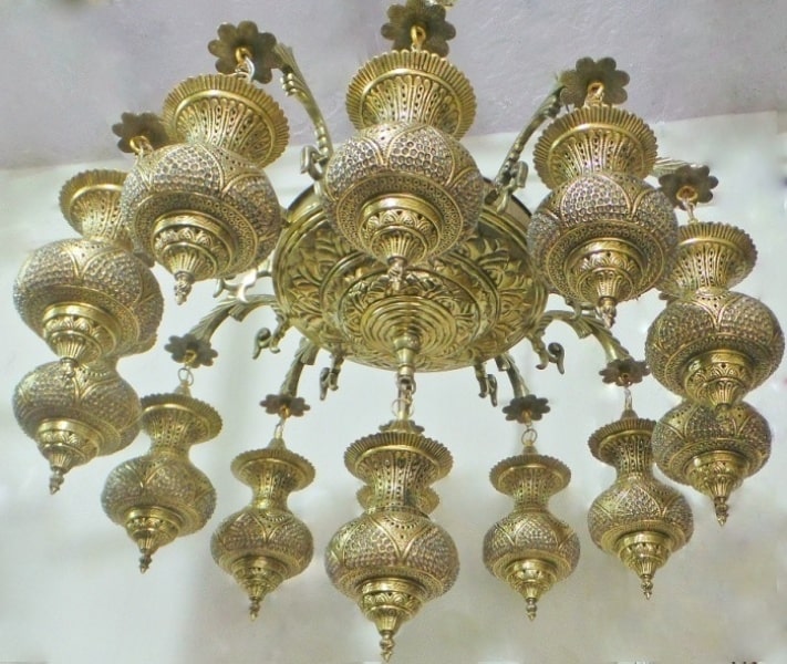 Big Size Mughal Style Ancient Design Brass Lamps Jhoomar
