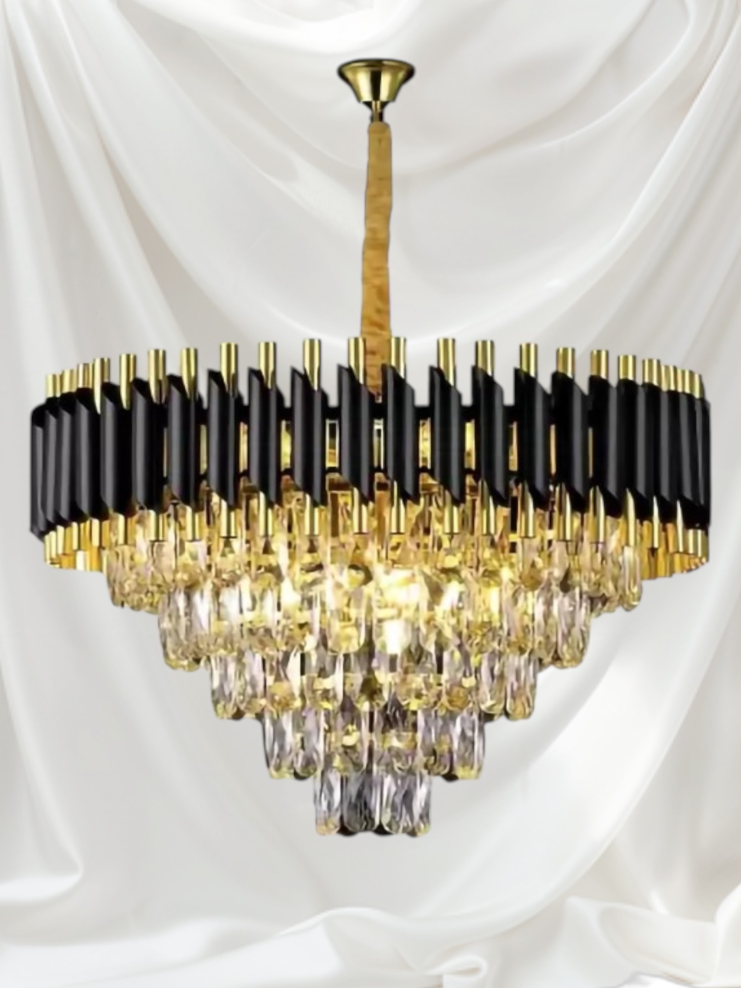 Black Mamba 600 Mm Round Black And Golden Finish Ceiling Pendant Chandelier