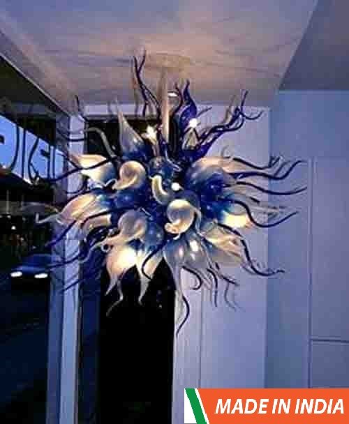Jhoomarwala to decorate your home with a new design glass art with led chandelier which has decorate with leaves of glass which makes beauty to your home.These designs represent the ideals of incomparable presence,feasibility and an deficiency of decoration.