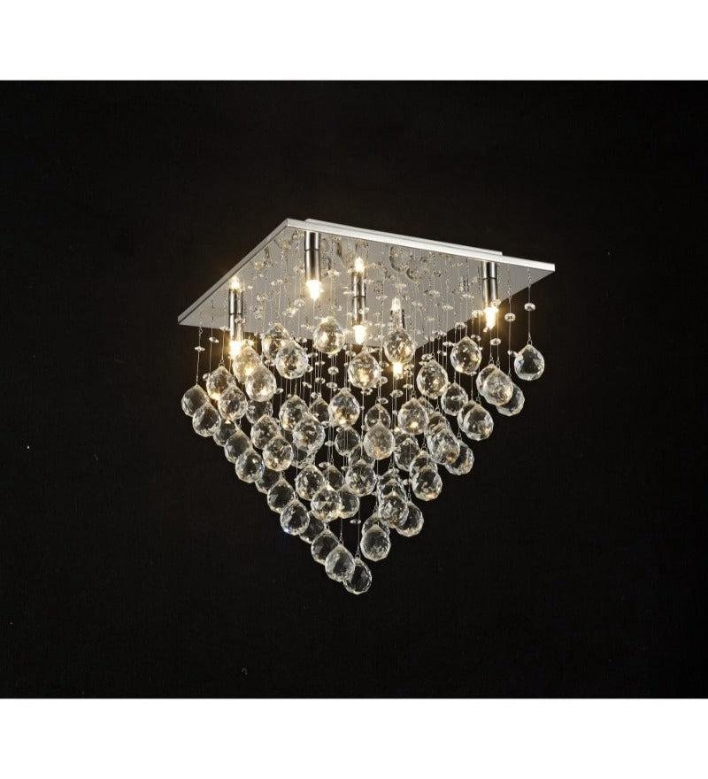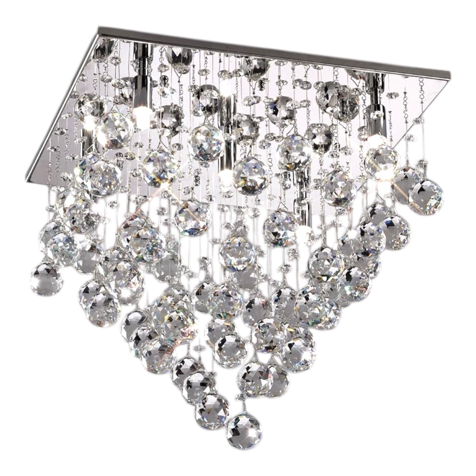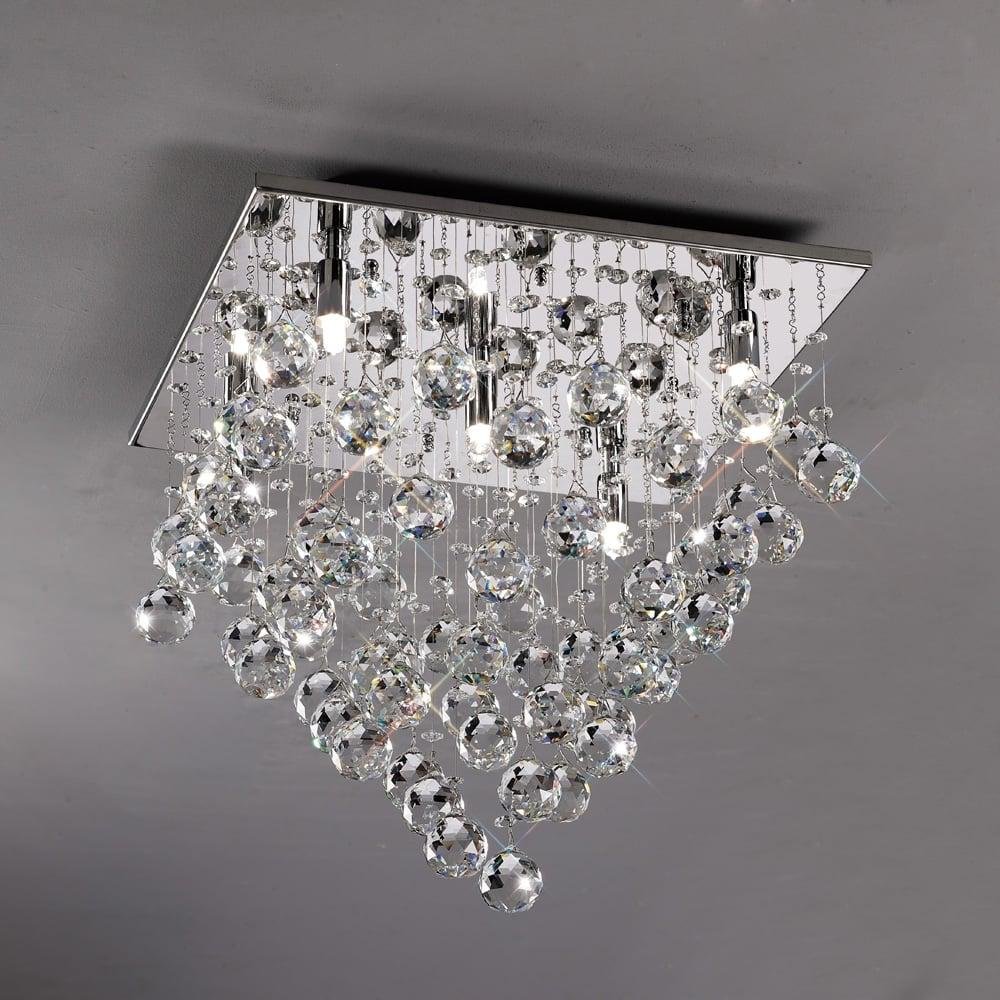 Key Features: Modern crystal and metal design, polished chrome finish, clear crystal spheres, 5 G9 bulbs, compact size, affordable at Deal, ideal for dining rooms or bedrooms.