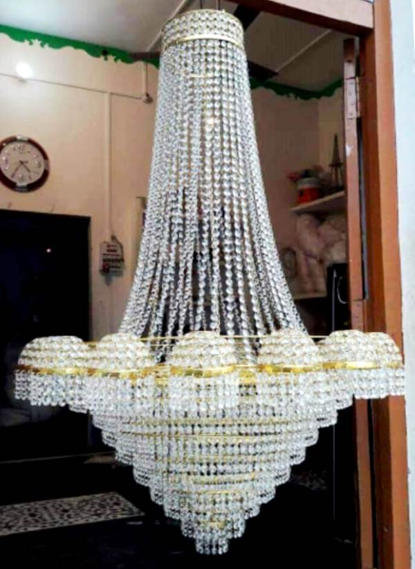 Cone Shape Big Size Crystal Pendant Golden Design Chandelier For Home, Hotel & Temple