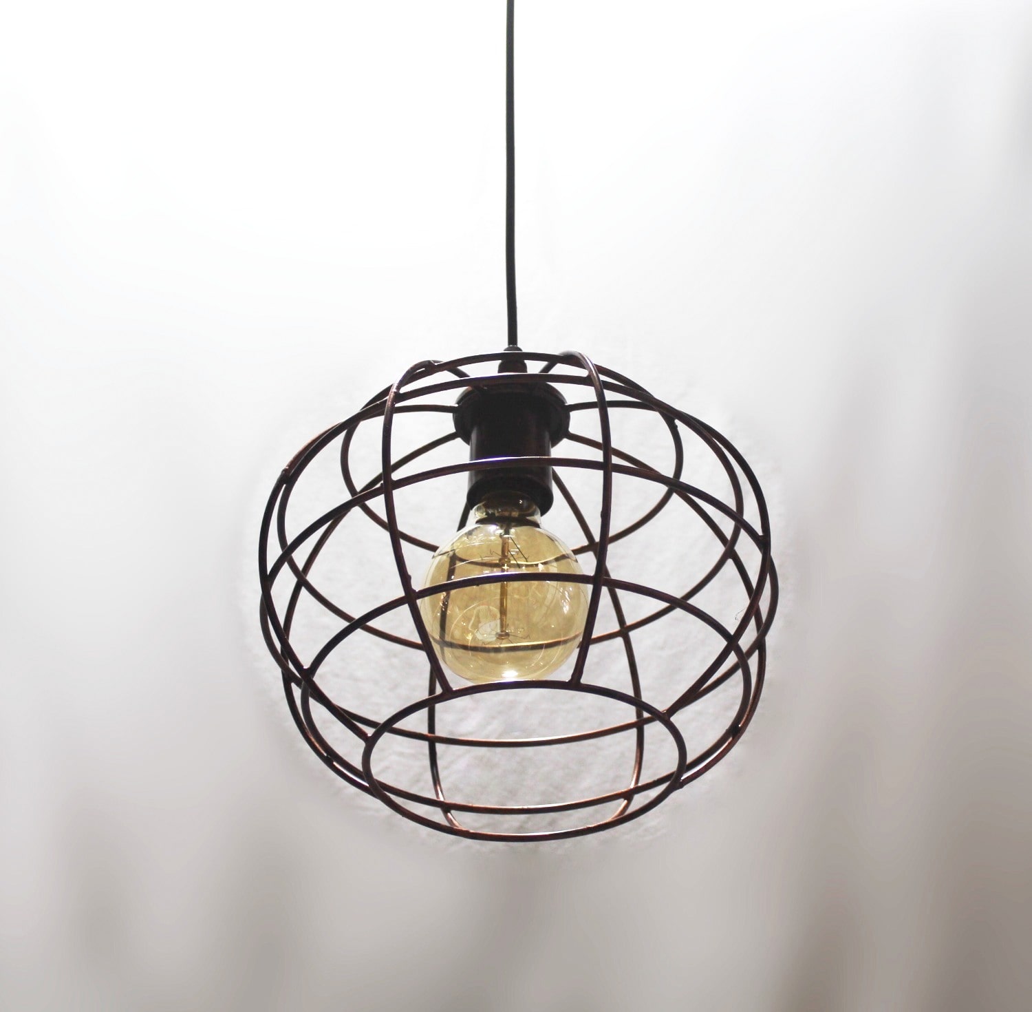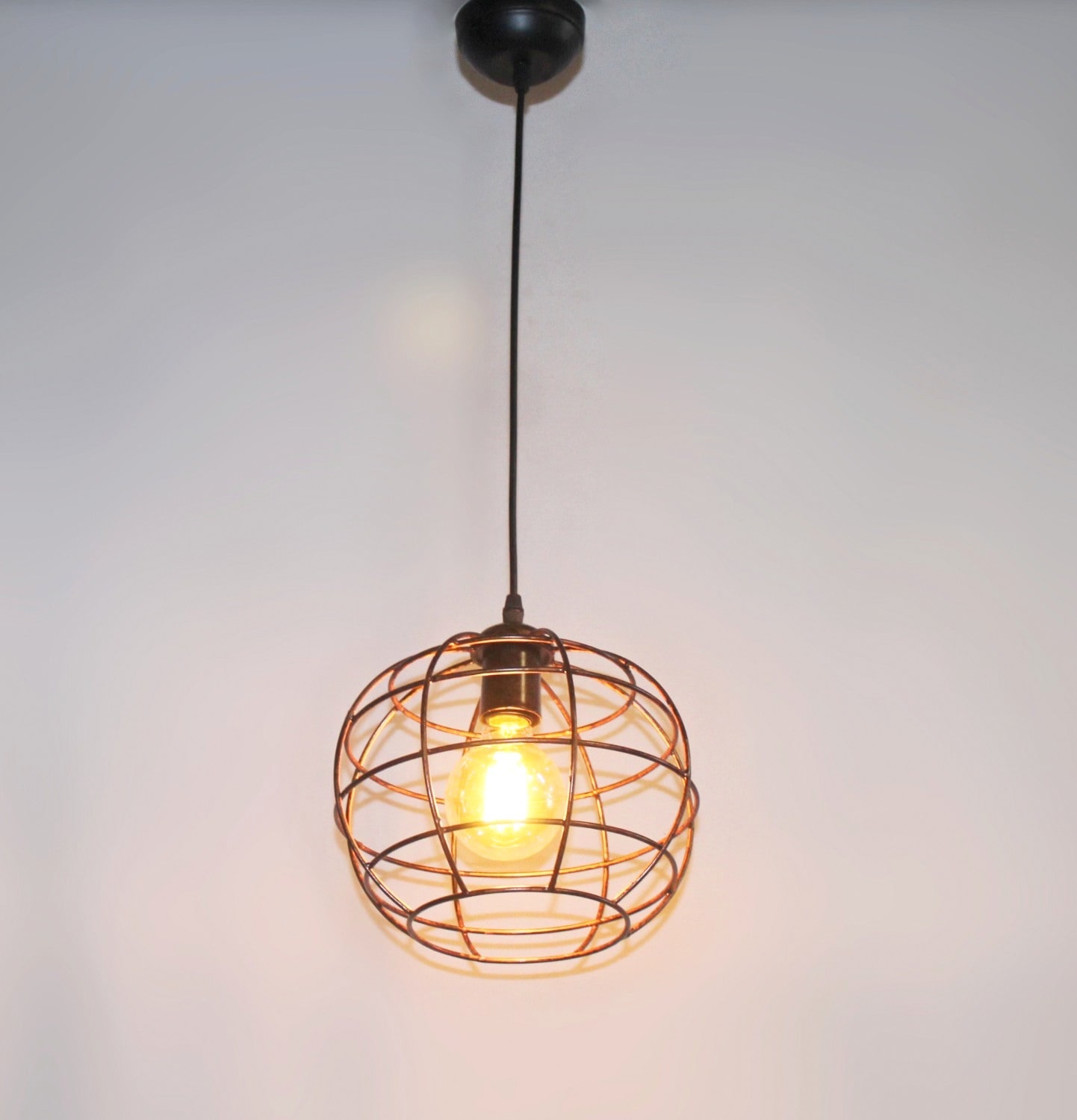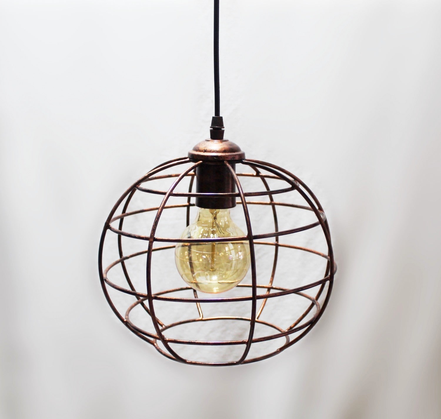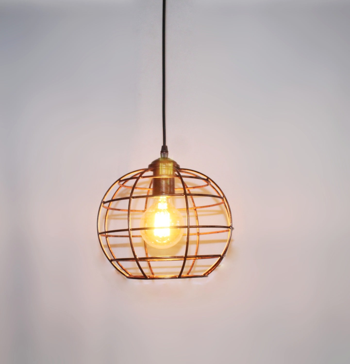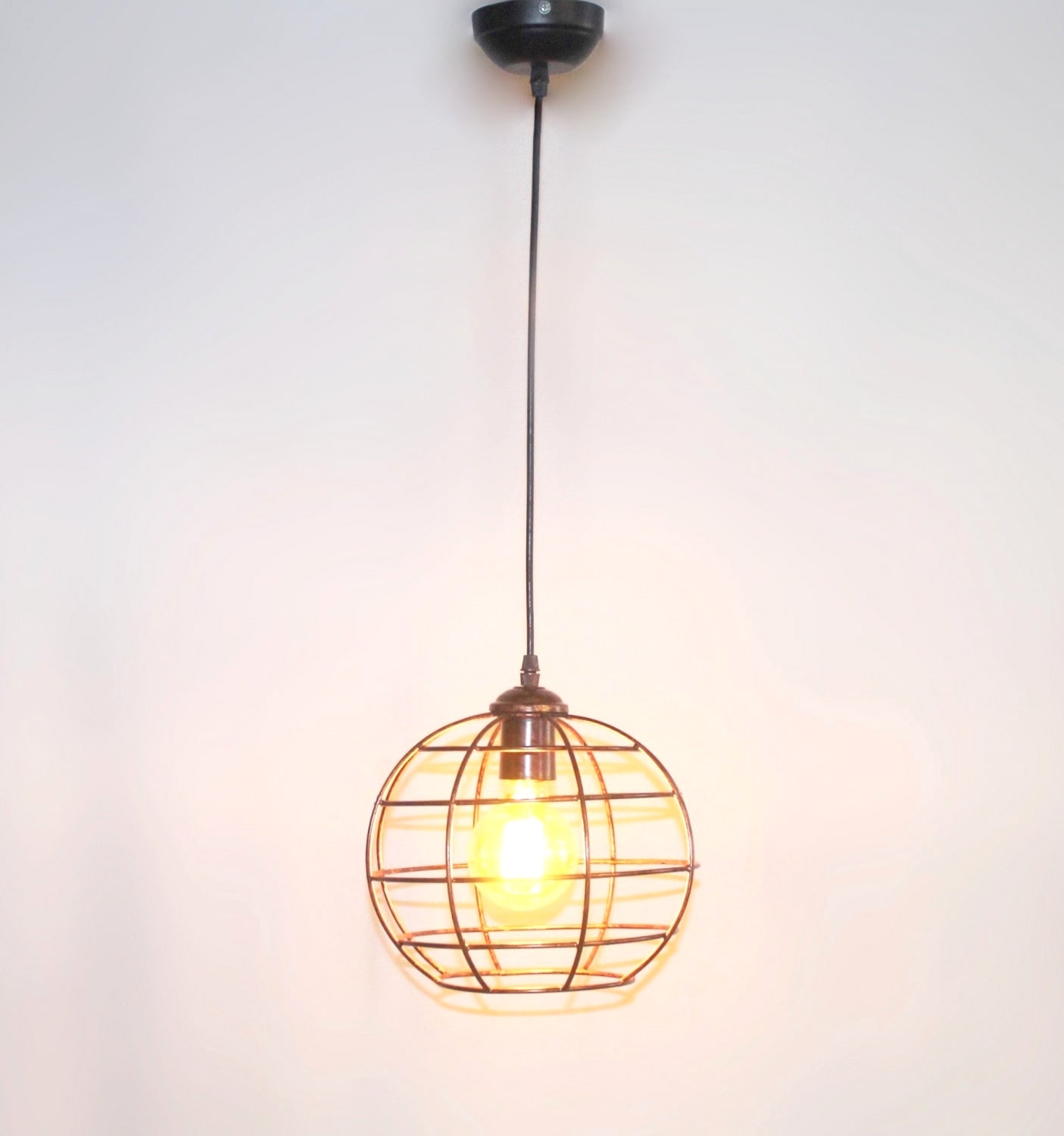 Copper Finish Globe Pattern Cage Pendant Light