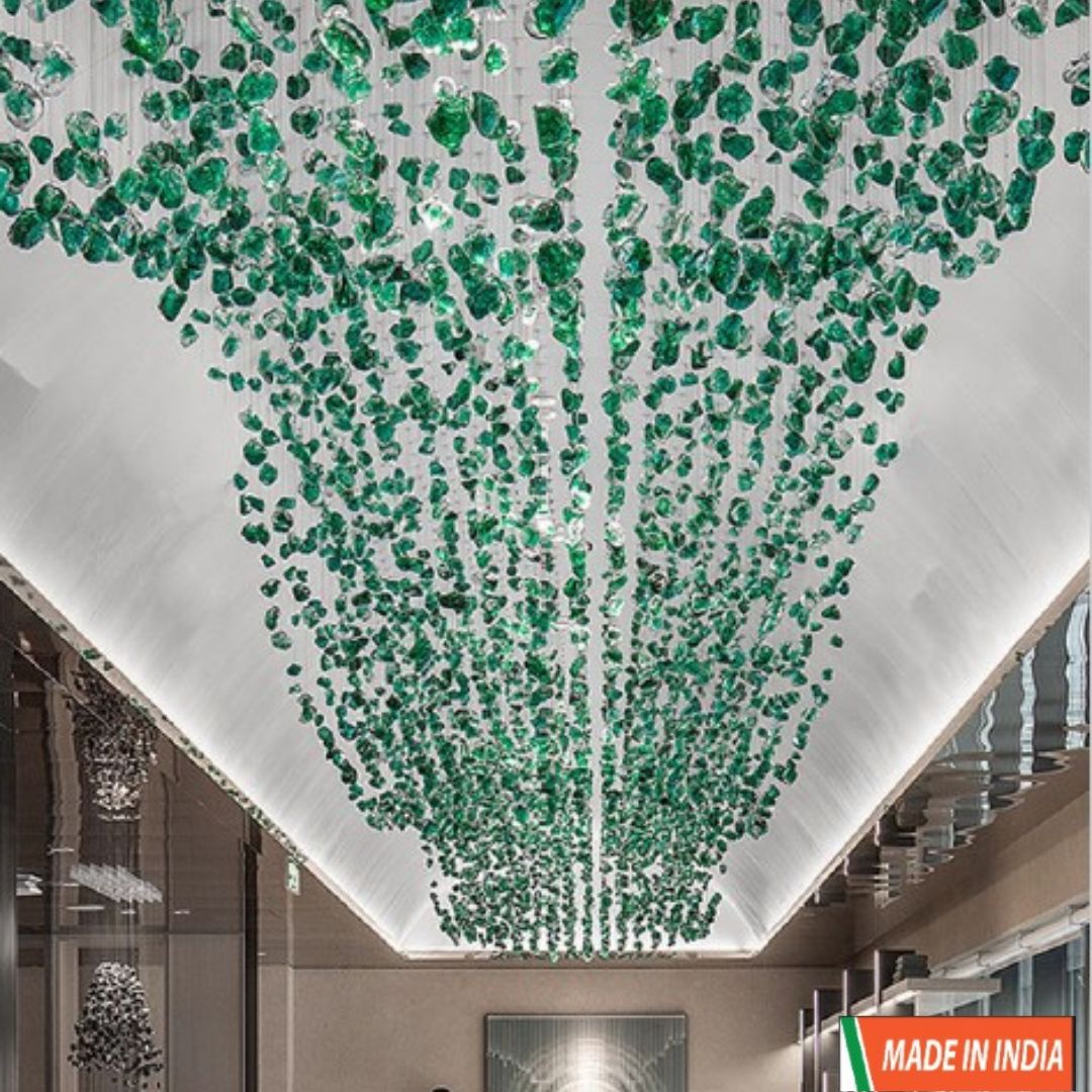 Custom Modern Decorative Light Luxury Colored Glass Stone Crystal Beads Chandelier