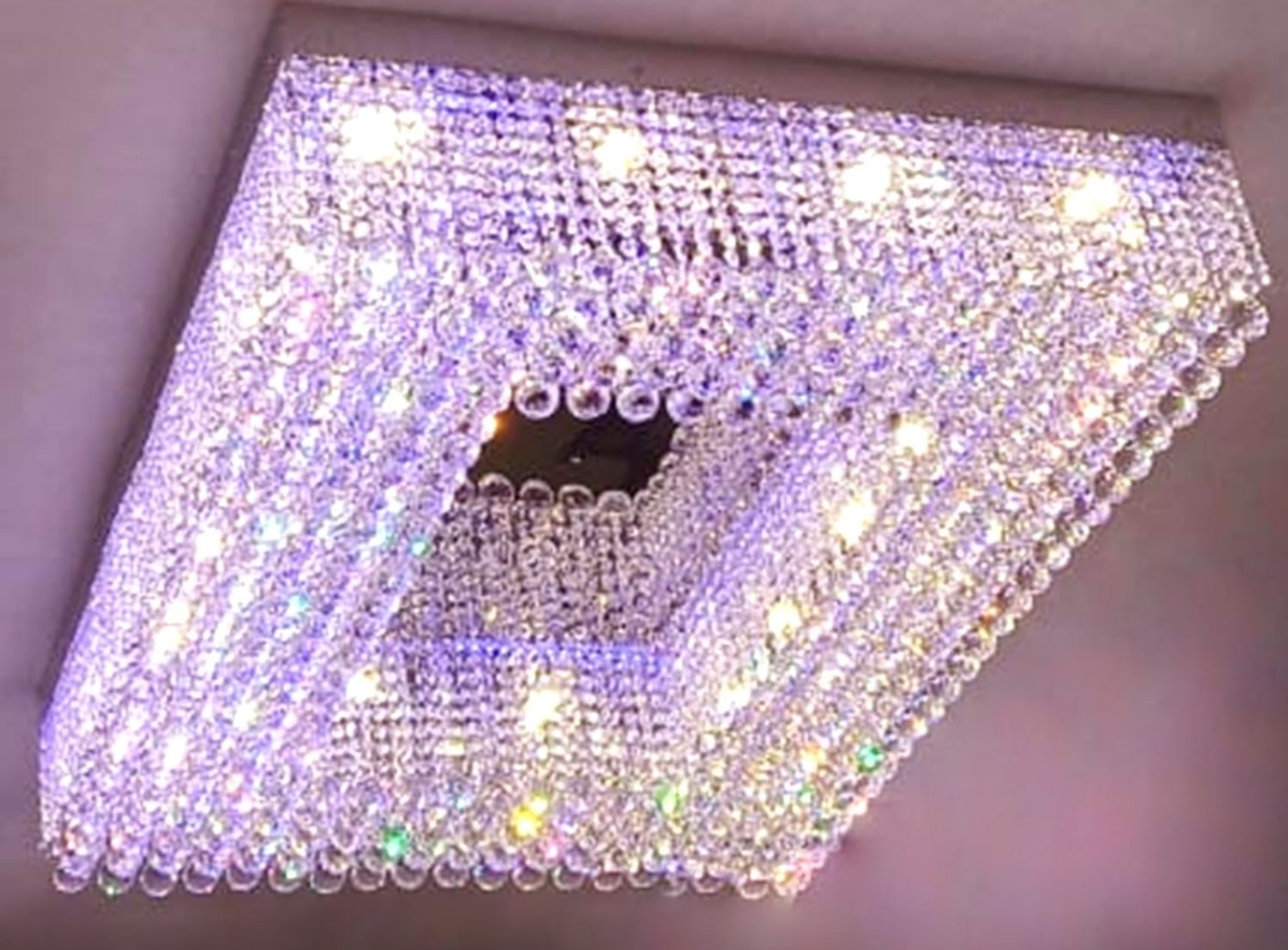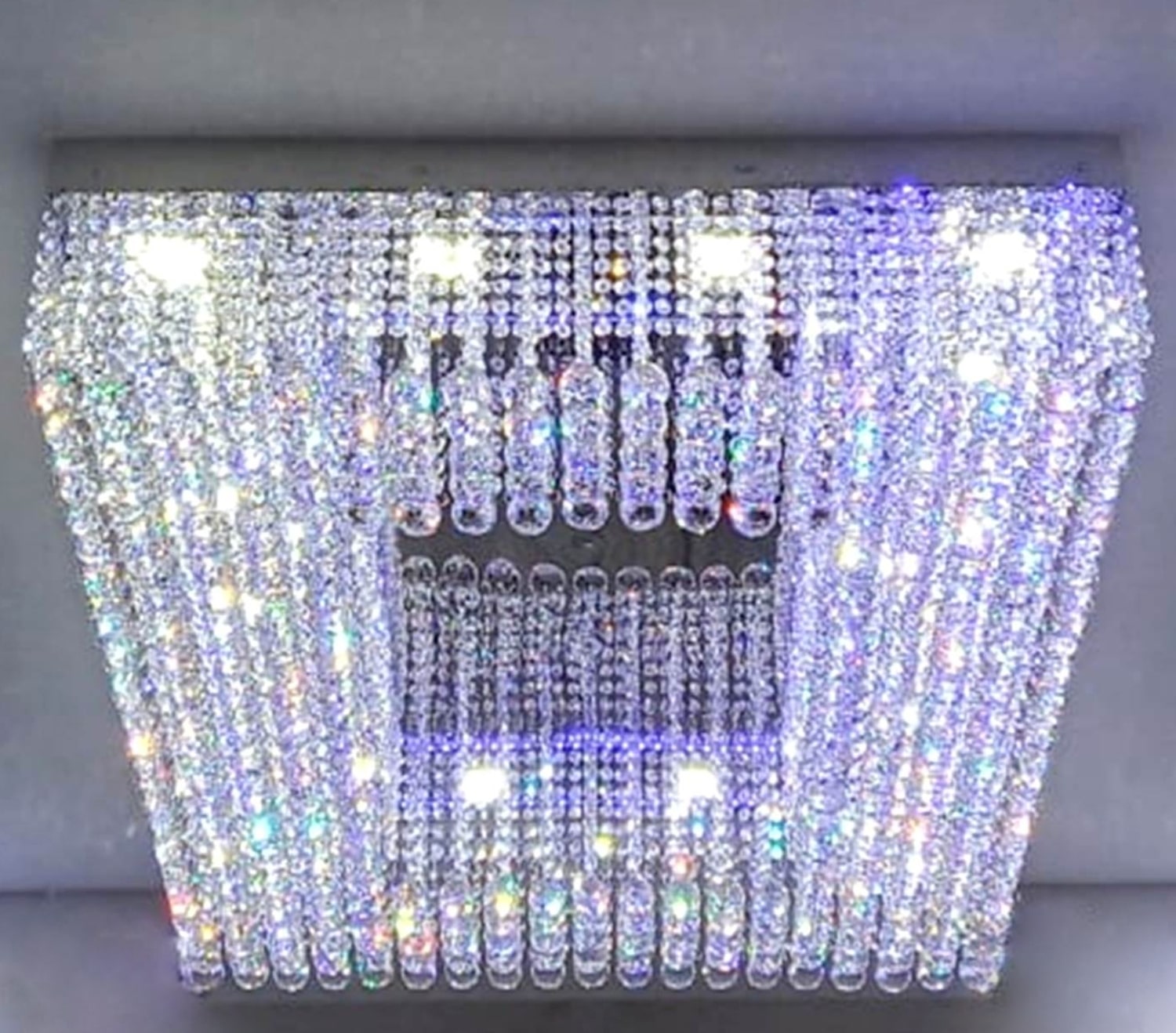 Customize Rectangular Shape Crystal Decor Ceiling Mount Chandelier