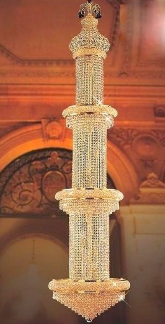The crystal chandelier for double floor ceiling.This is customized and made in India chandelier.