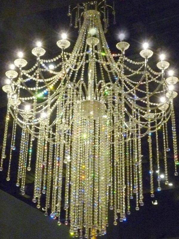 This is a made in India product and made by best quality crystal beads.Shop the luxurious 183 cm crystal chandelier featuring 40 mm K9 crystals, hanging crystal beads, and a chrome metal finish. Ideal for hotels, banquet halls, and high-ceiling spaces — available now at Jhoomarwala.