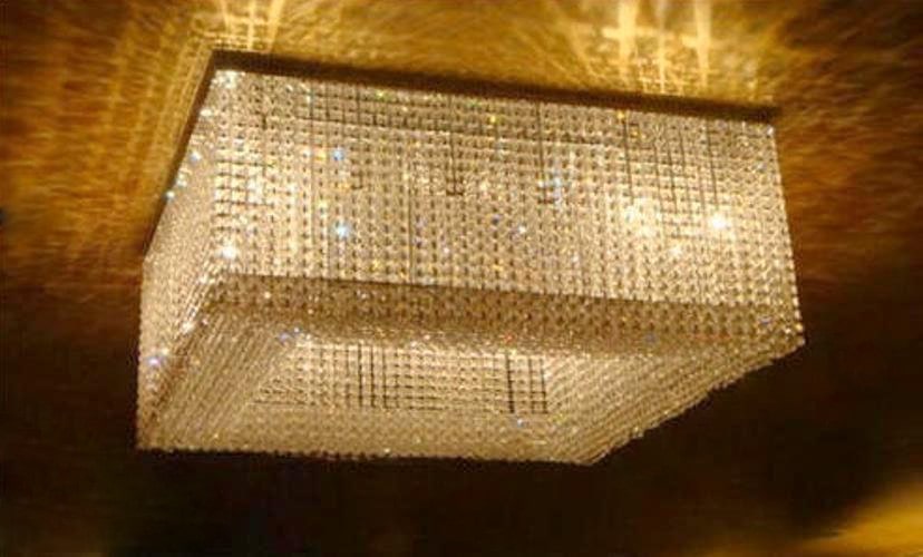 Customized Rectangular Shape Luxury Crystal Pendant And Brilliant Led Light Illuminated Ceiling Fixture Chandelier