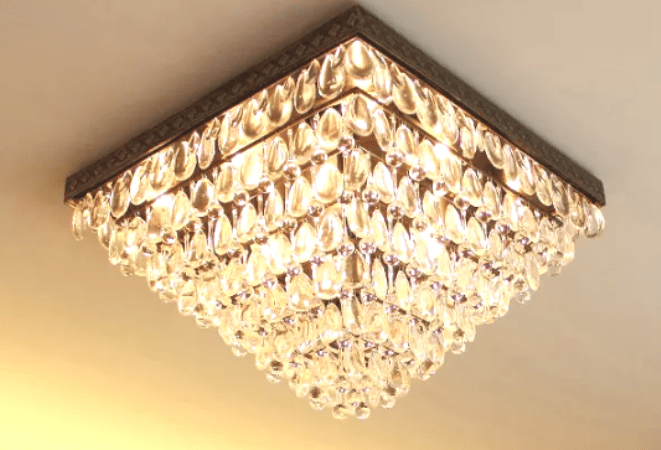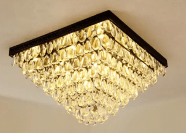 Customized Square Shape Luxury Almond Design Crystal Decor Led Light Surface Mounted Chandelier