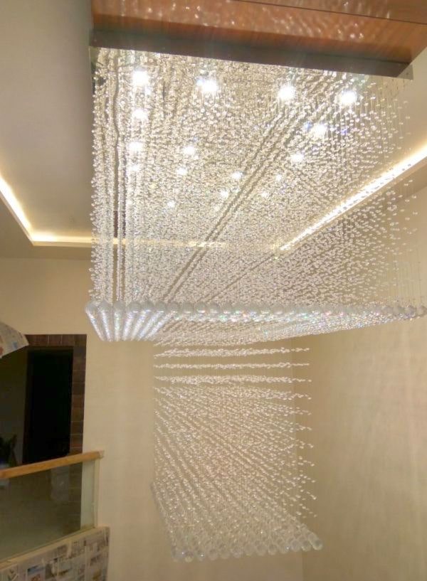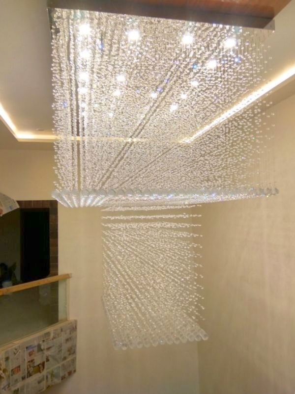 Customized Square Shape Raindrop Crystal Decor Chandelier For Double Heighted Ceiling Home And Hotels