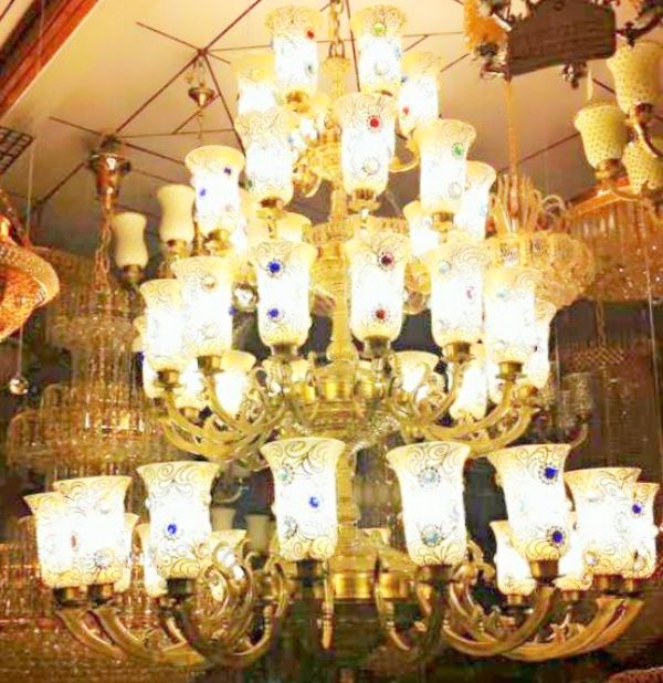 The double heighted maharaja style and antique chandelier for hotels and homes decoration.