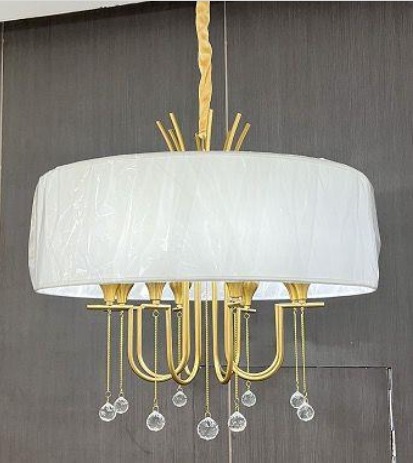 Drum-shaped Fabric Shade Provides A Clean, Soft Diffusion Of Light, While The Golden Arms & Central Decorative Rods Introduce Subtle Italian Decorative Flair.modern Round Shaped Chandelier Is Designed In A Very Beautiful Traditional Way & The Crystals Emb