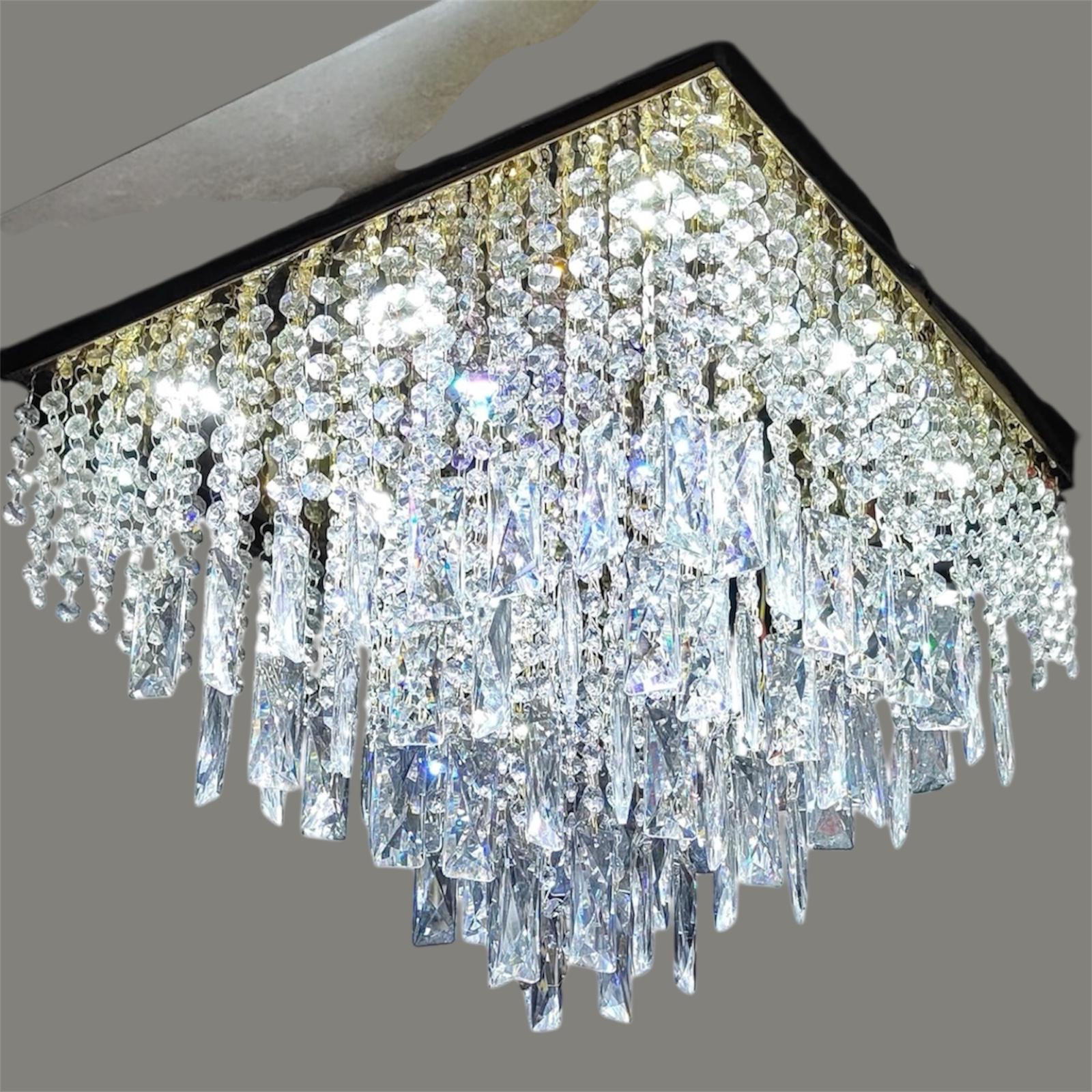 Flush Mount Square Crystal Chandelier 50x25 Cm | Premium Ceiling Light