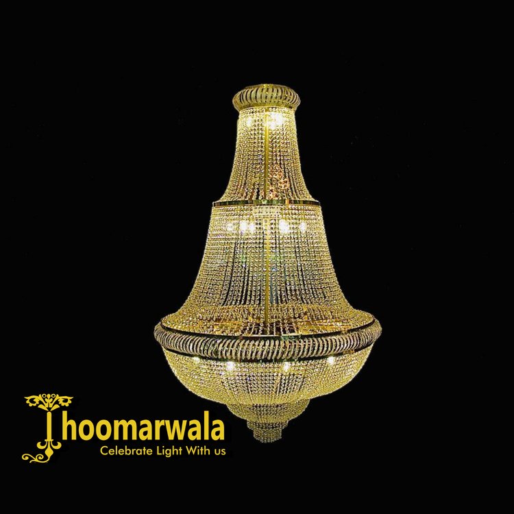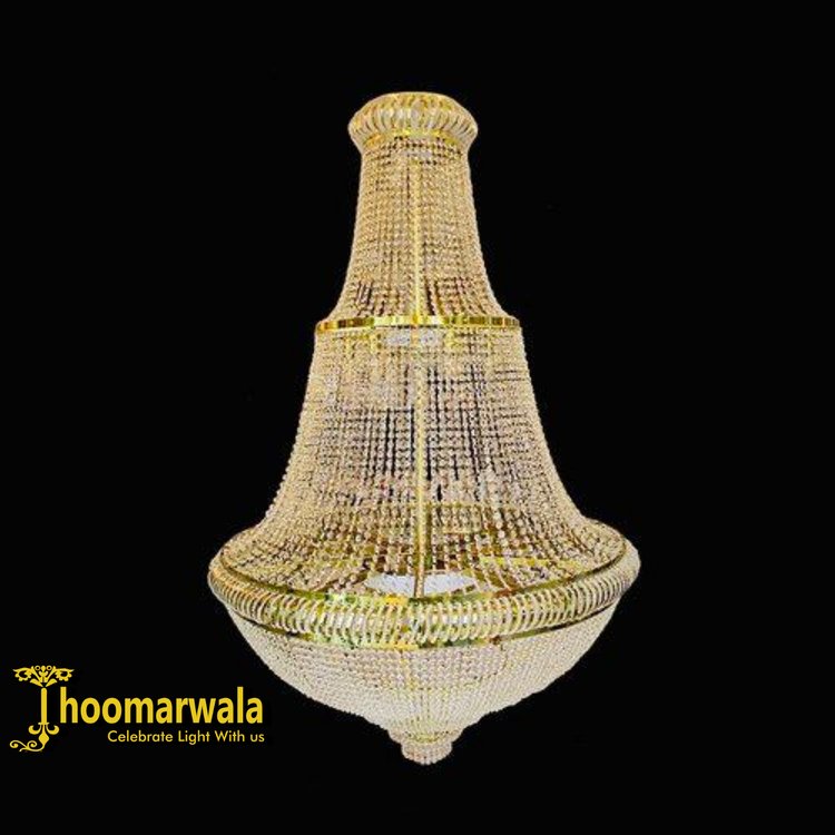 Golden chandelier with luminous style and having eye catching effect fulfills your home decoration desire.