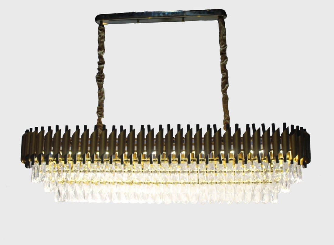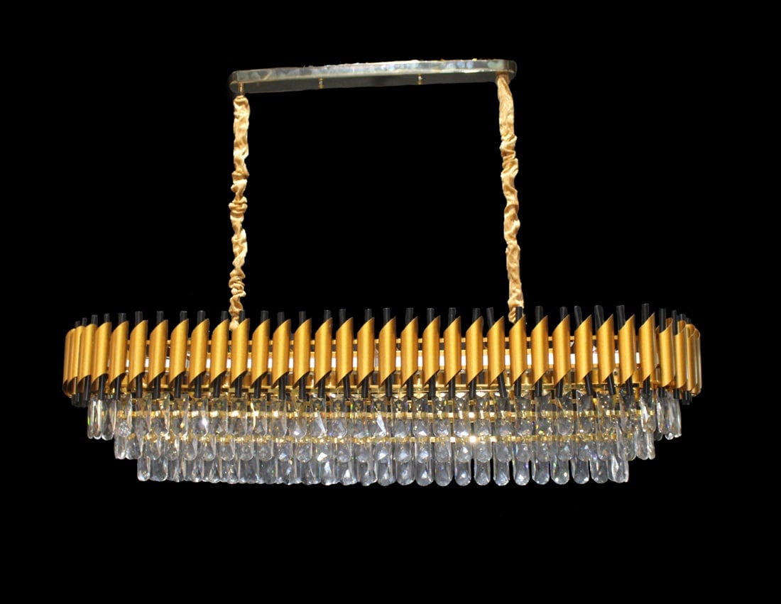 Golden Design 1200 X 350 Mm Rectangle Shape Crystal Decor Big Size Chandelier For Your Dining Room & Hotel