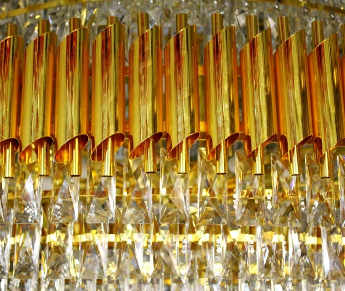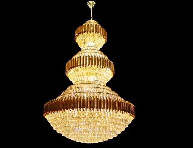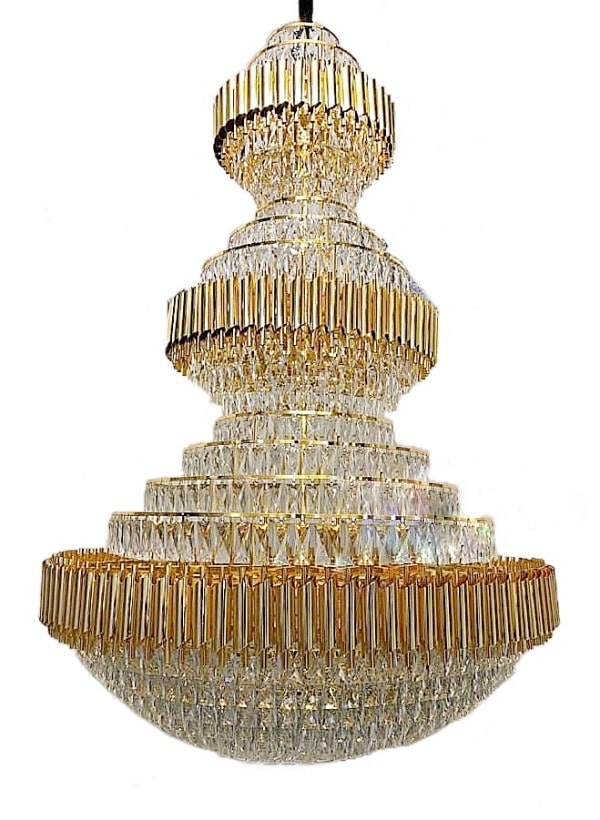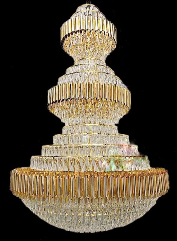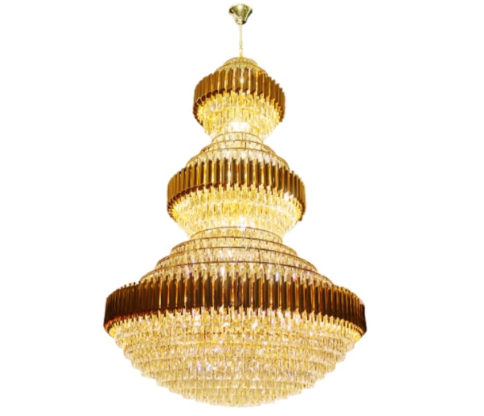 Golden Metal Finish And Fine Crystal Decorative Big Size Chandelier For Double Heighted Ceiling Home And Hotel