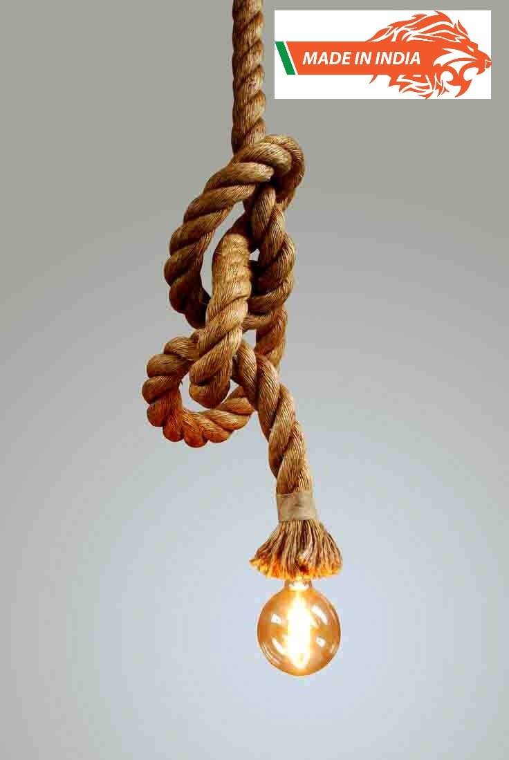 Electrical cord/wire is hand-wrapped in a thick jute rope.
