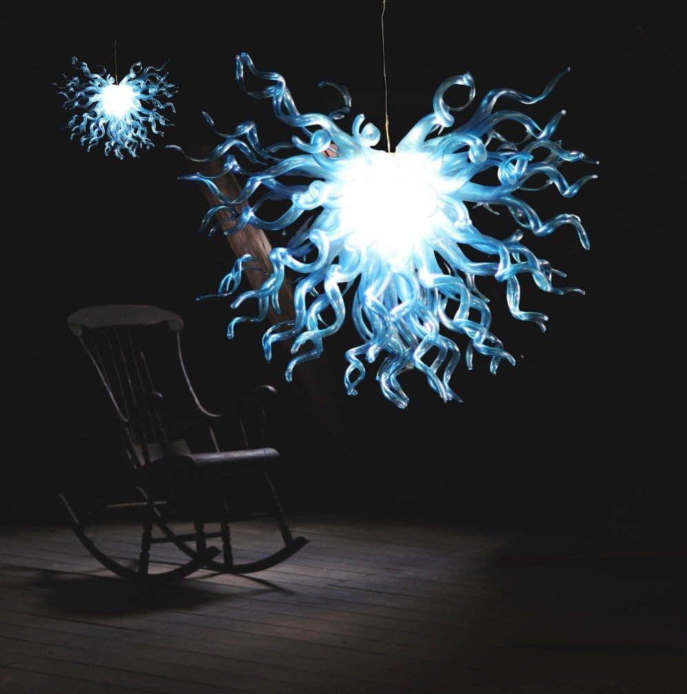 Formalize your home with Blue colored glass artistic baroque chandelier which pageantry your living space with its beauty so now shop online with Jhoomarwala.
