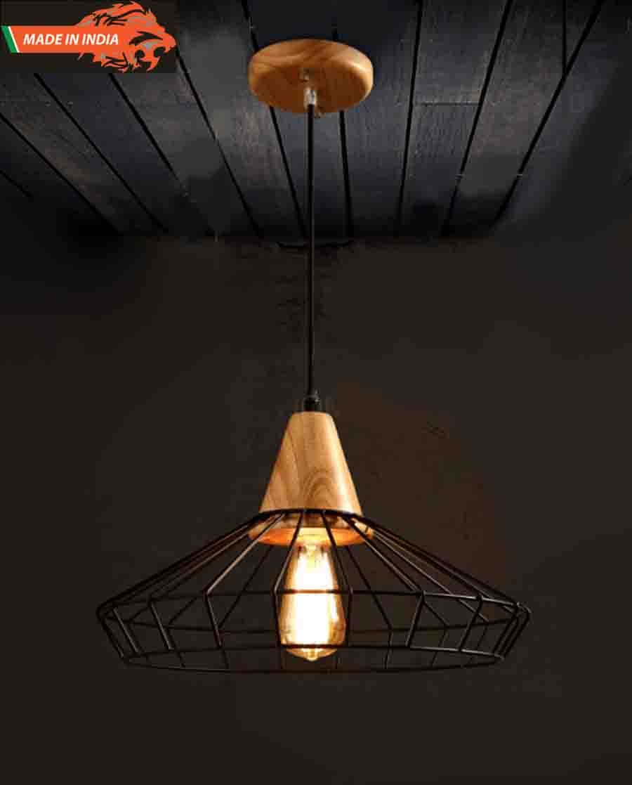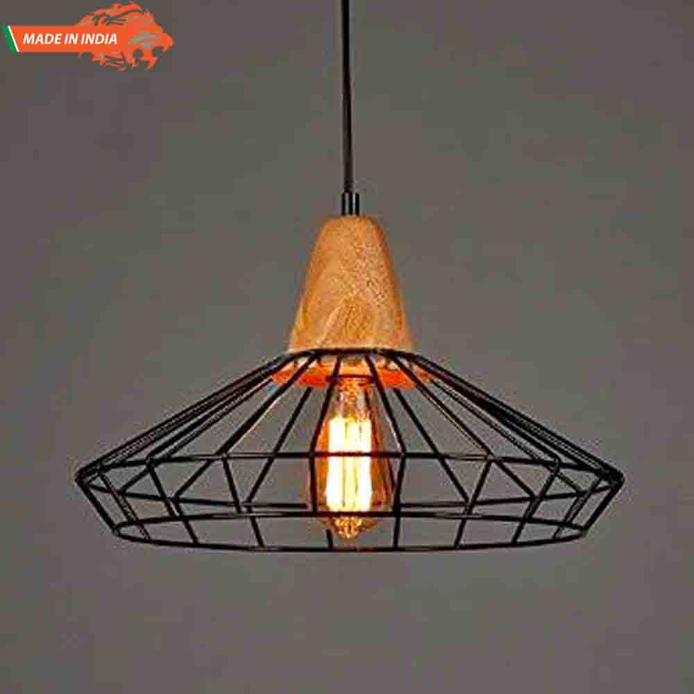 This is industrial black metal cage with wood art antique pendent light.This is rustic style perfect selection for bar,restaurant,outdoor home area,balcony,showroom and others use.It's refined black iron finish and natural wooden material and matched with vintage edition filament bulb.