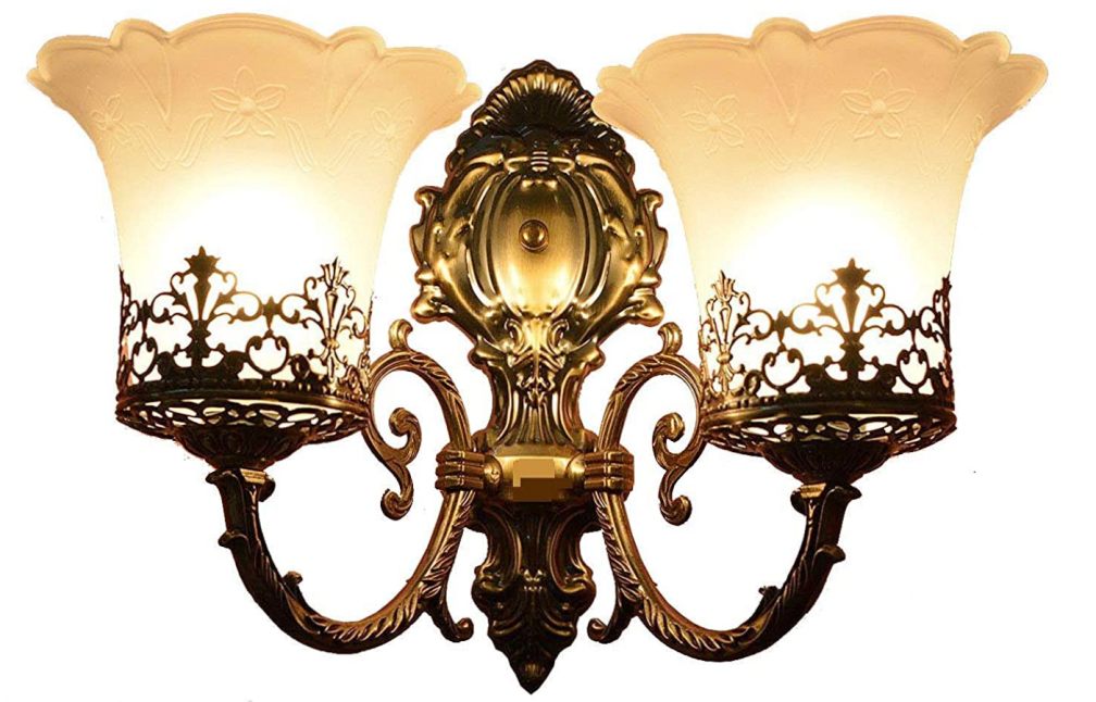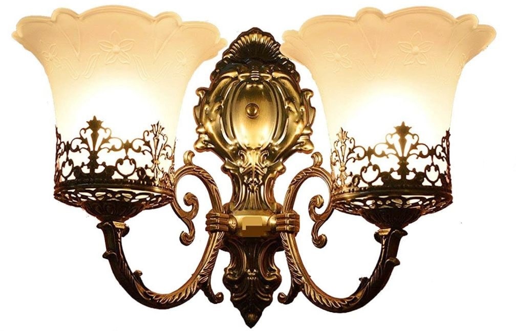 Isolated Victorian Style And Antique Design Two Glass Lamp Wall Mount Lamp