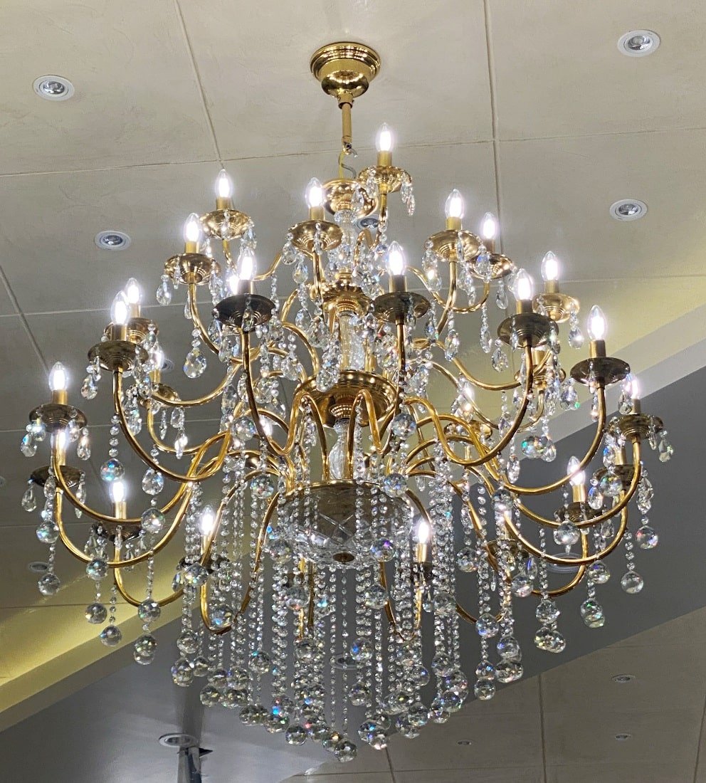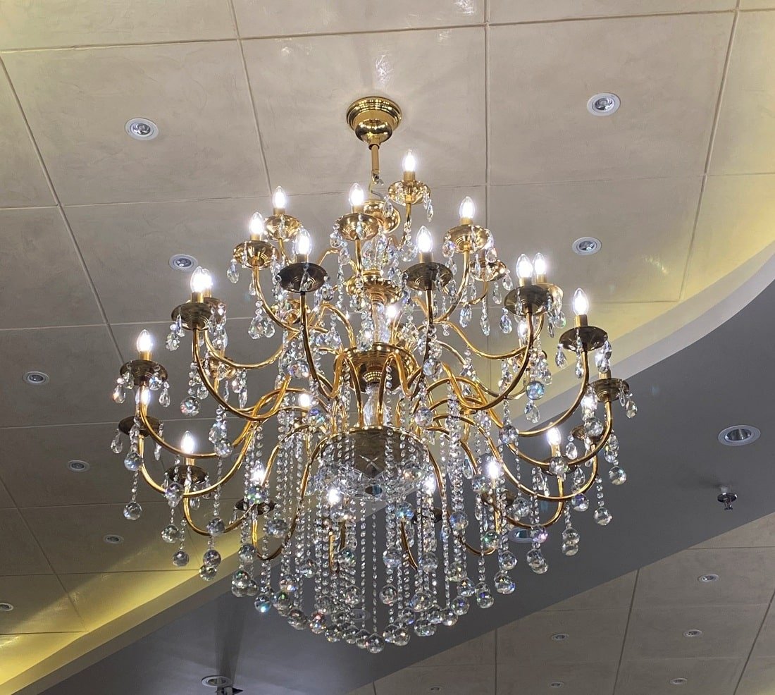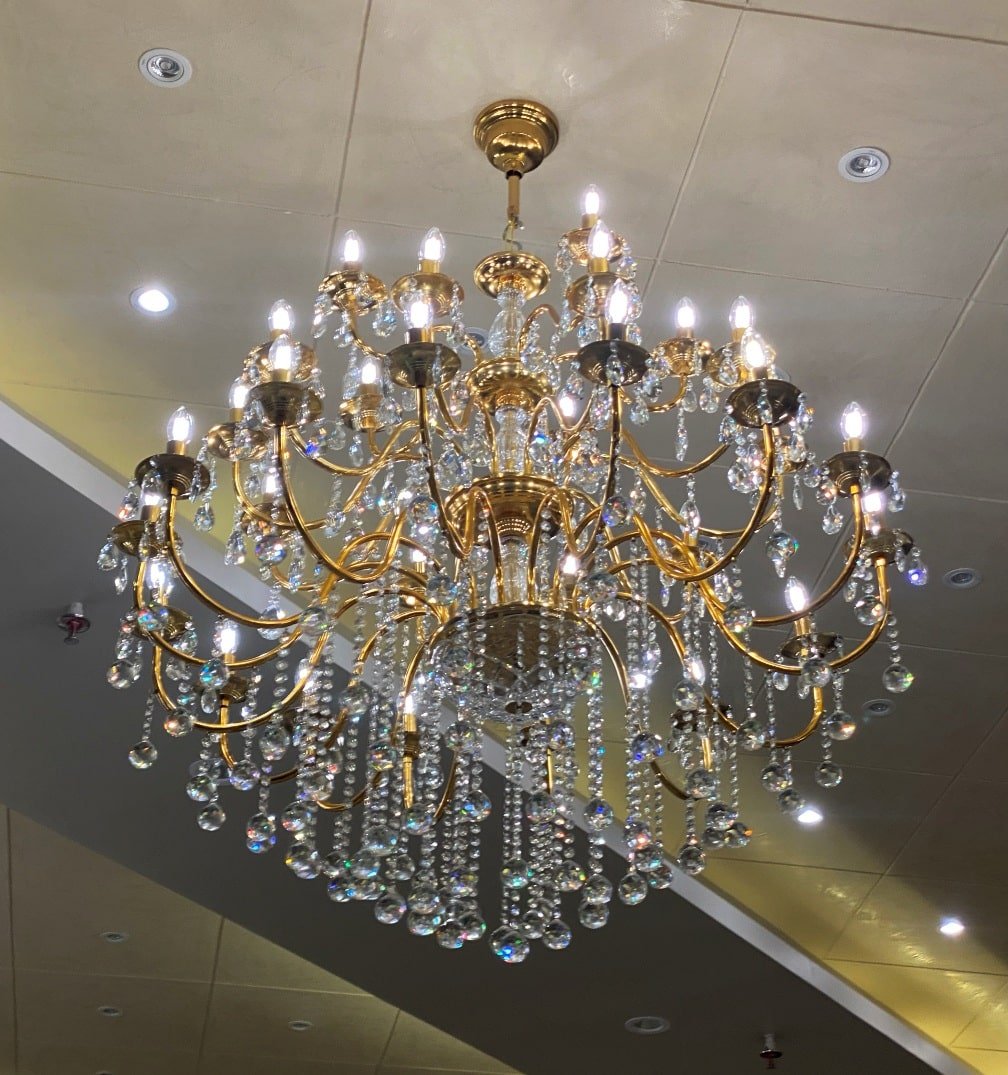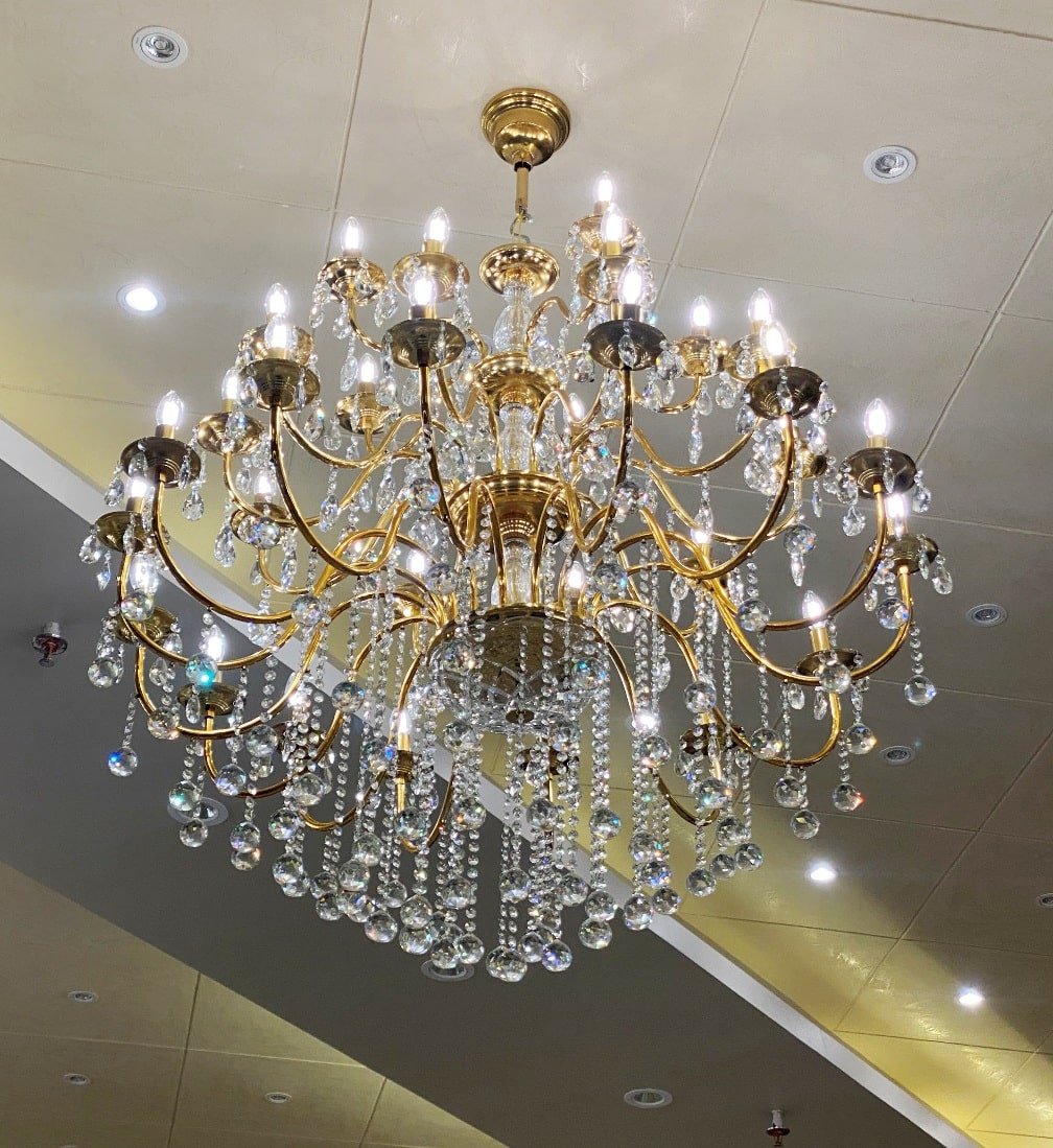 Jhoomarwala Made Golden Finish And Crystal Pendant Italian Chandelier For Hotel And Home Decor Lighting