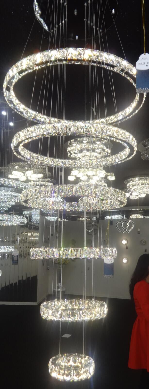 Fine metal with crystal ring type hanging chandelier with led flash increase style with its fine light.
