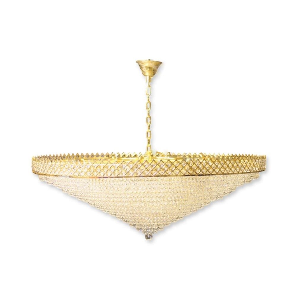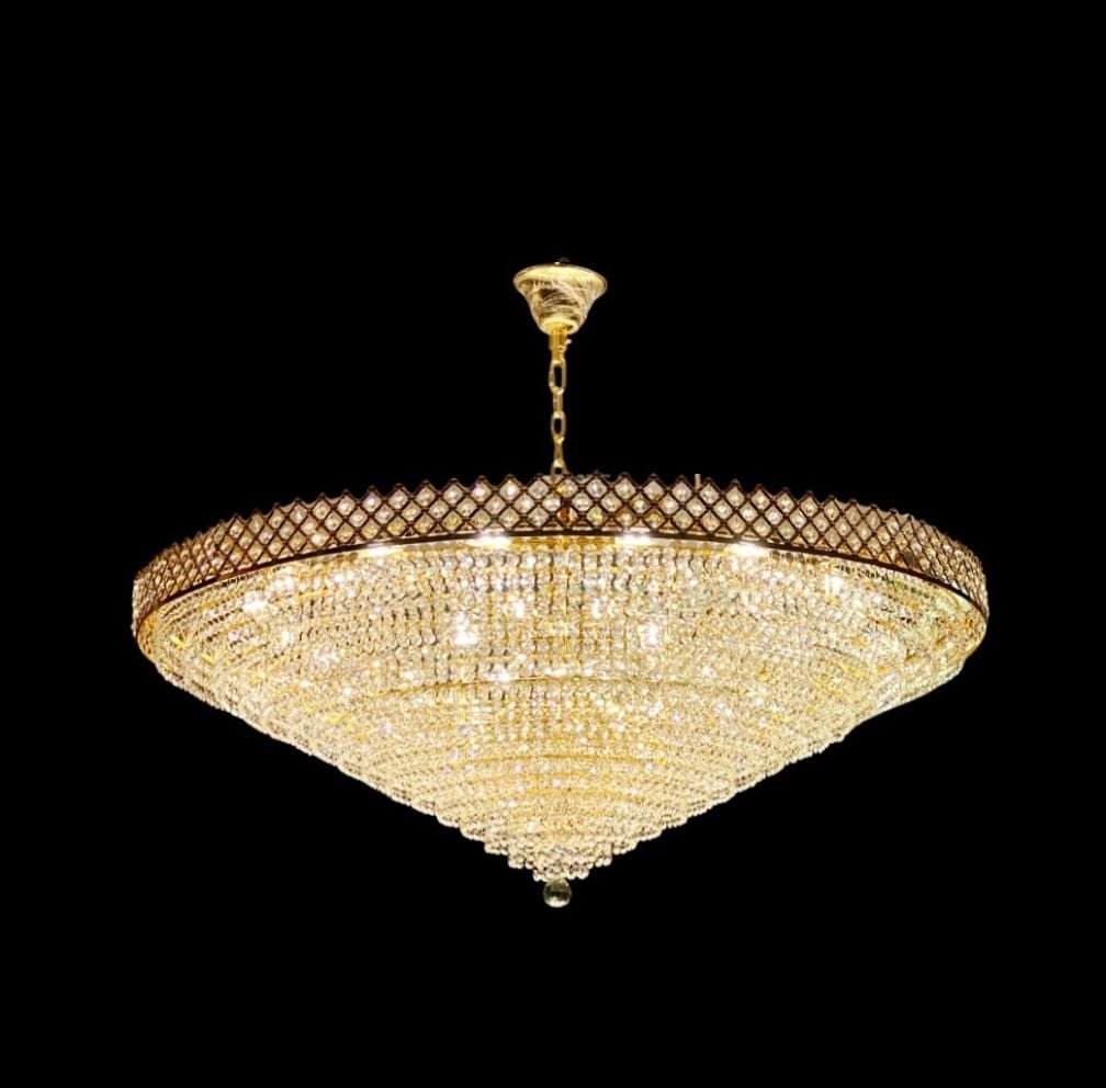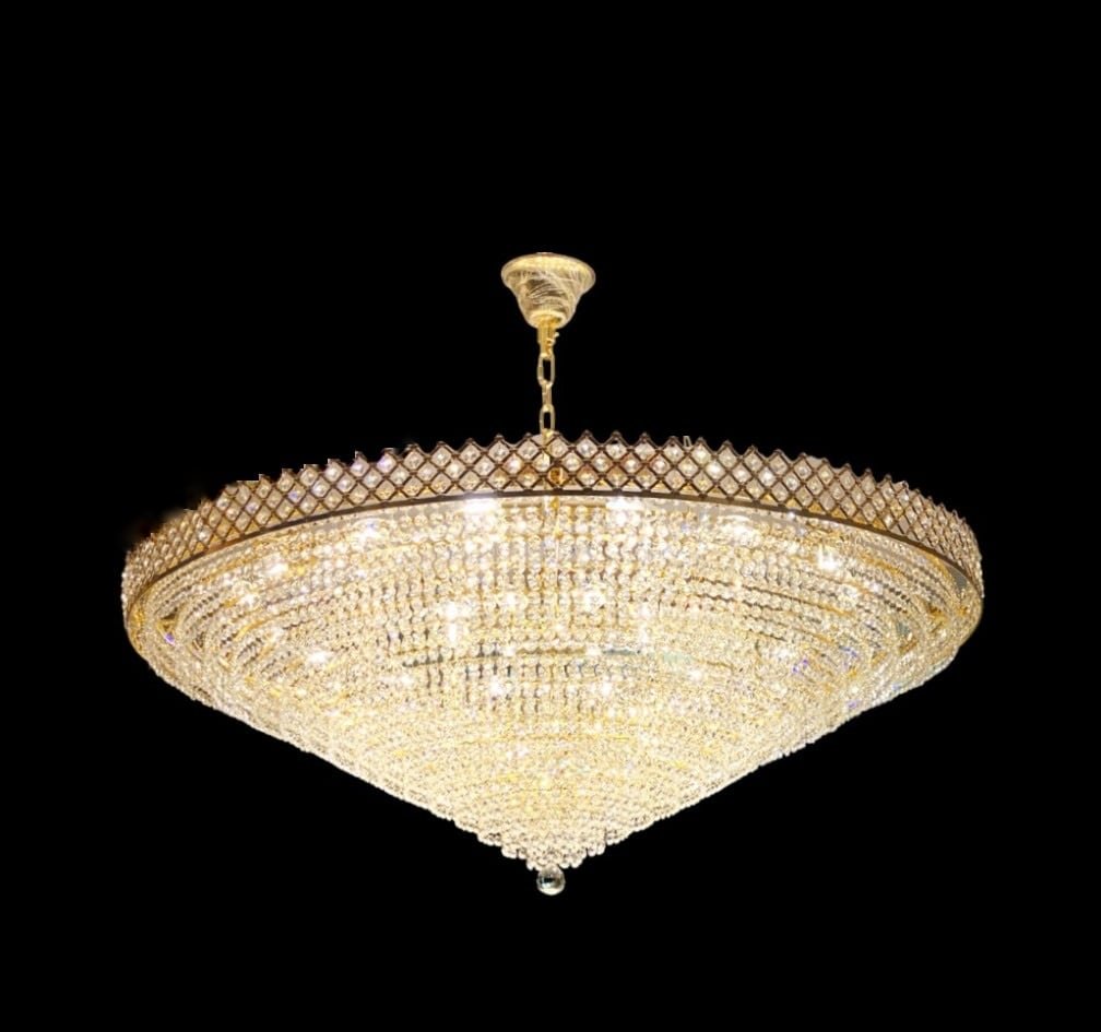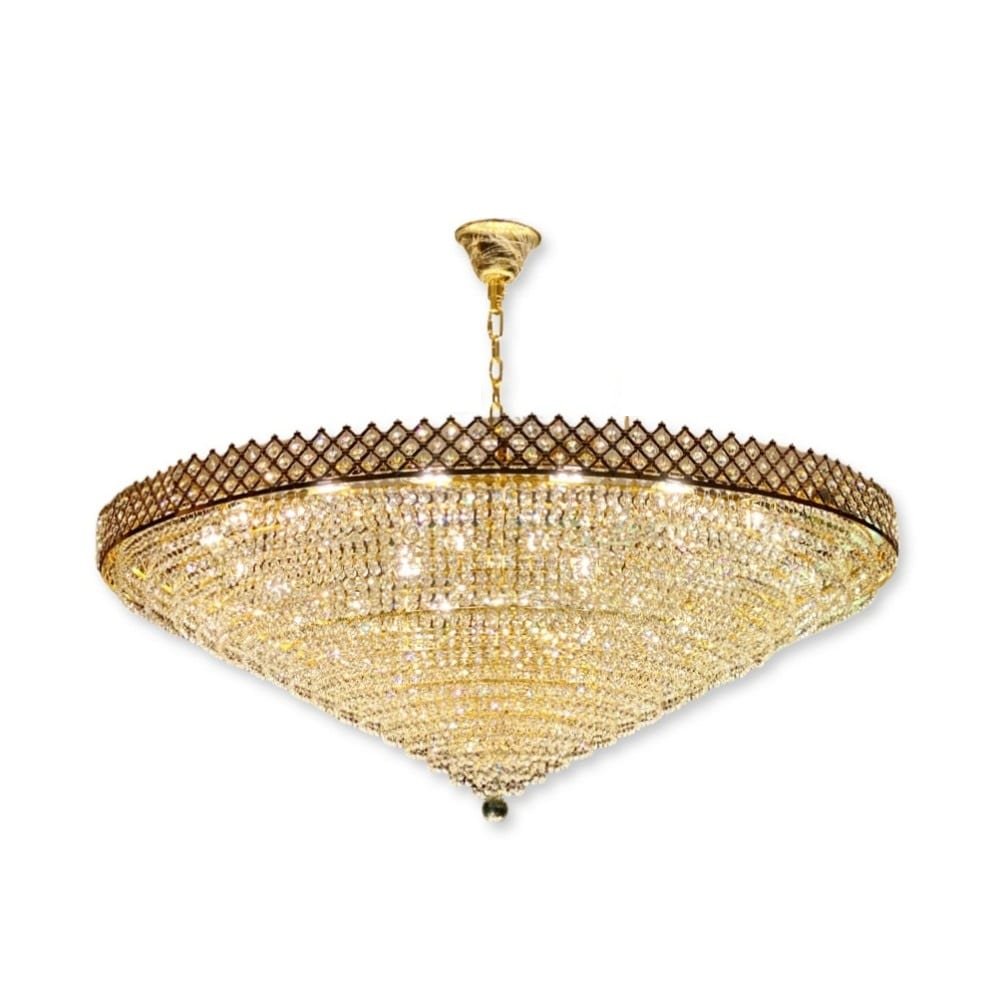 Large Size Half Cone Shape Crystal Decor Pendant Chandelier With Gold Finish Metal Body