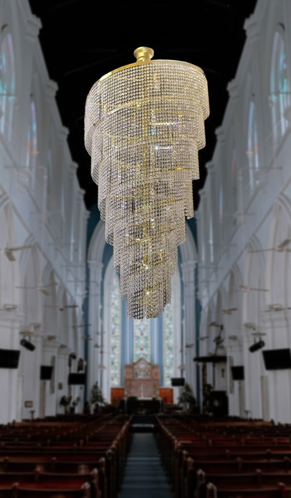 Luxury Crystal Decor Customize By Jhoomarwala Spiral Shape Design With Gold Finish Metal Body Pendant Chandelier For Home And Hotel