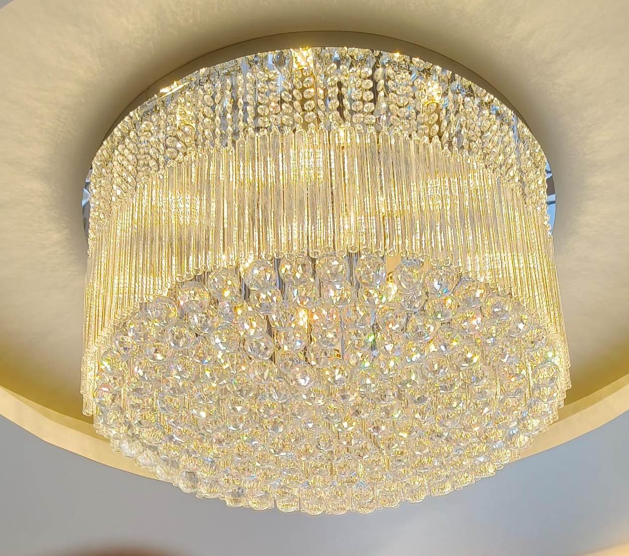 Luxury Crystal Drum Flush Mount Ceiling Light Chandelier