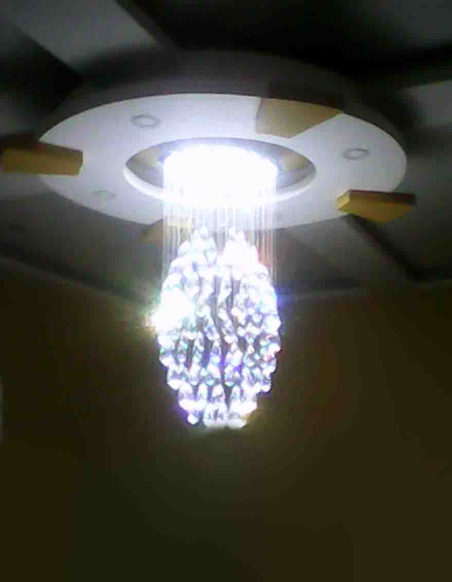 It's raindrop crystal LED luxury pendant chandelier is suitable for highest range ceiling height, It's available three light led colors like, white, warm white, and natural white with shine almond crystal hang in around to rich charming look at your decor area.