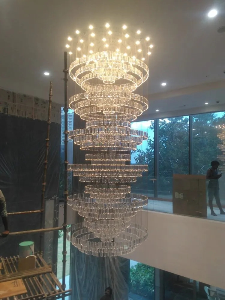 Spiral design Crystal Chandelier Staircase Villa Lamp Centerpiece Decoration Golden Metal Column shape Modern Chandelier