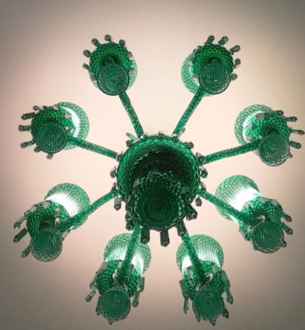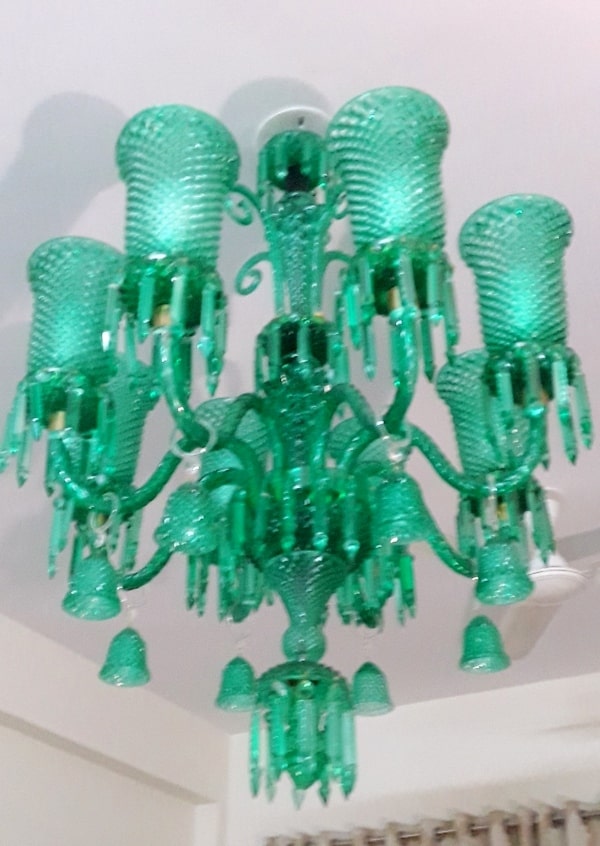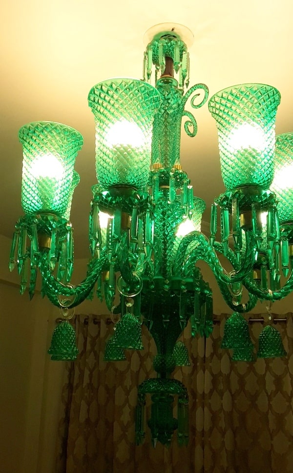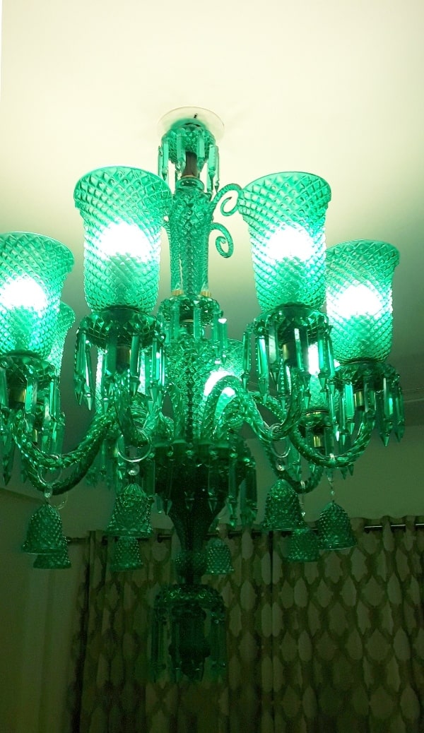 Made In India Green Color High Quality Glass Lamp Mid Century Pattern Design Chandelier