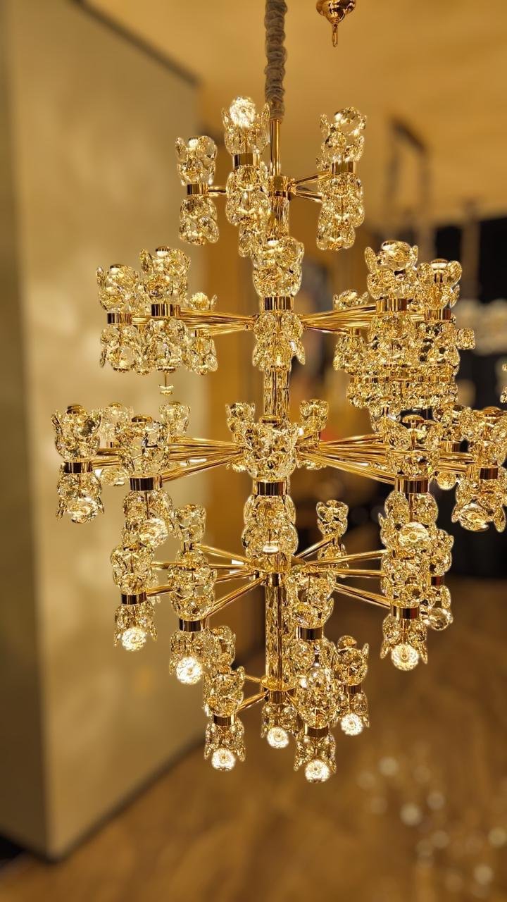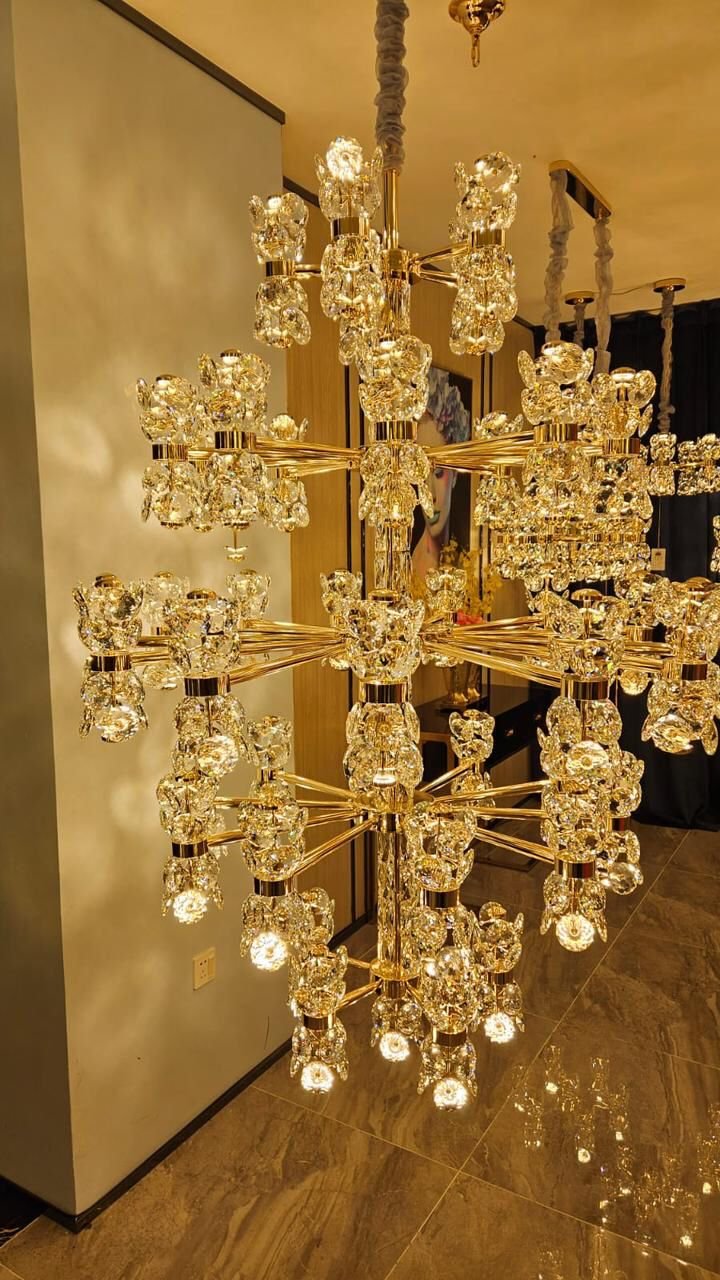 Transform grand spaces into timeless masterpieces with this magnificent double-height designer chandelier by Jhoomarwala. Meticulously crafted with premium crystal globes and a gold-plated metallic frame, this piece brings unmatched elegance and luminosity to luxury interiors.