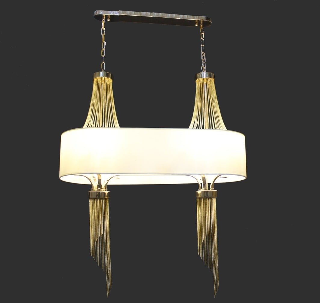 Modern Design Rectangular Shape Fabric Shade Chandelier For Living Room And Dining Room